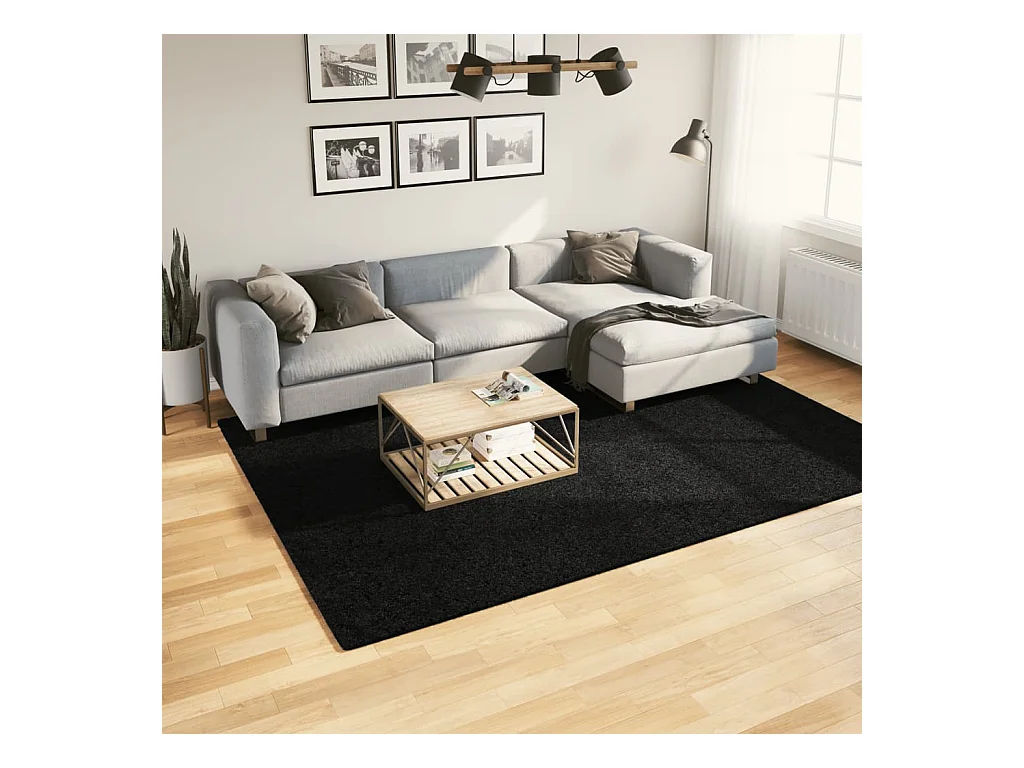 Tapete de pelo curto macio e lavável 200x280 cm preto