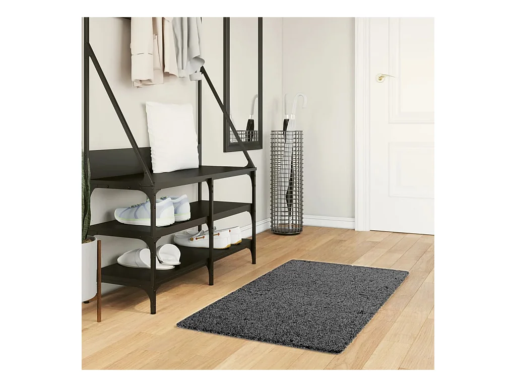 Tapete de pelo alto aspeto brilhante HUARTE 80x150 cm antracite