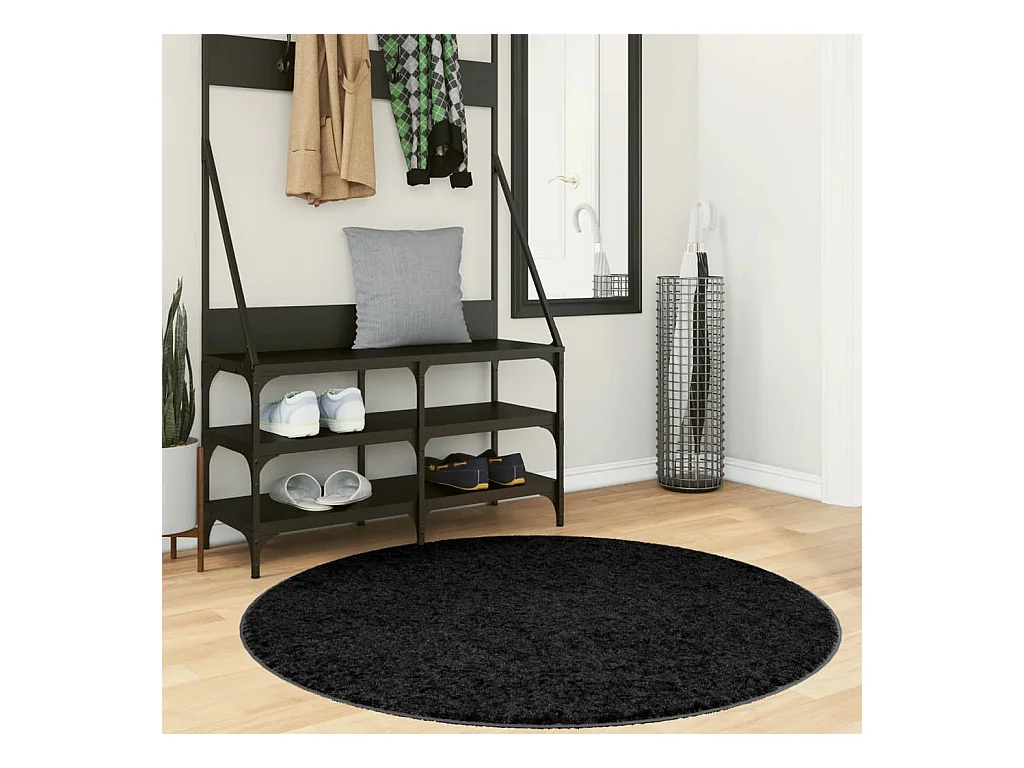 Tapete de pelo curto macio e lavável Ø 120 cm preto
