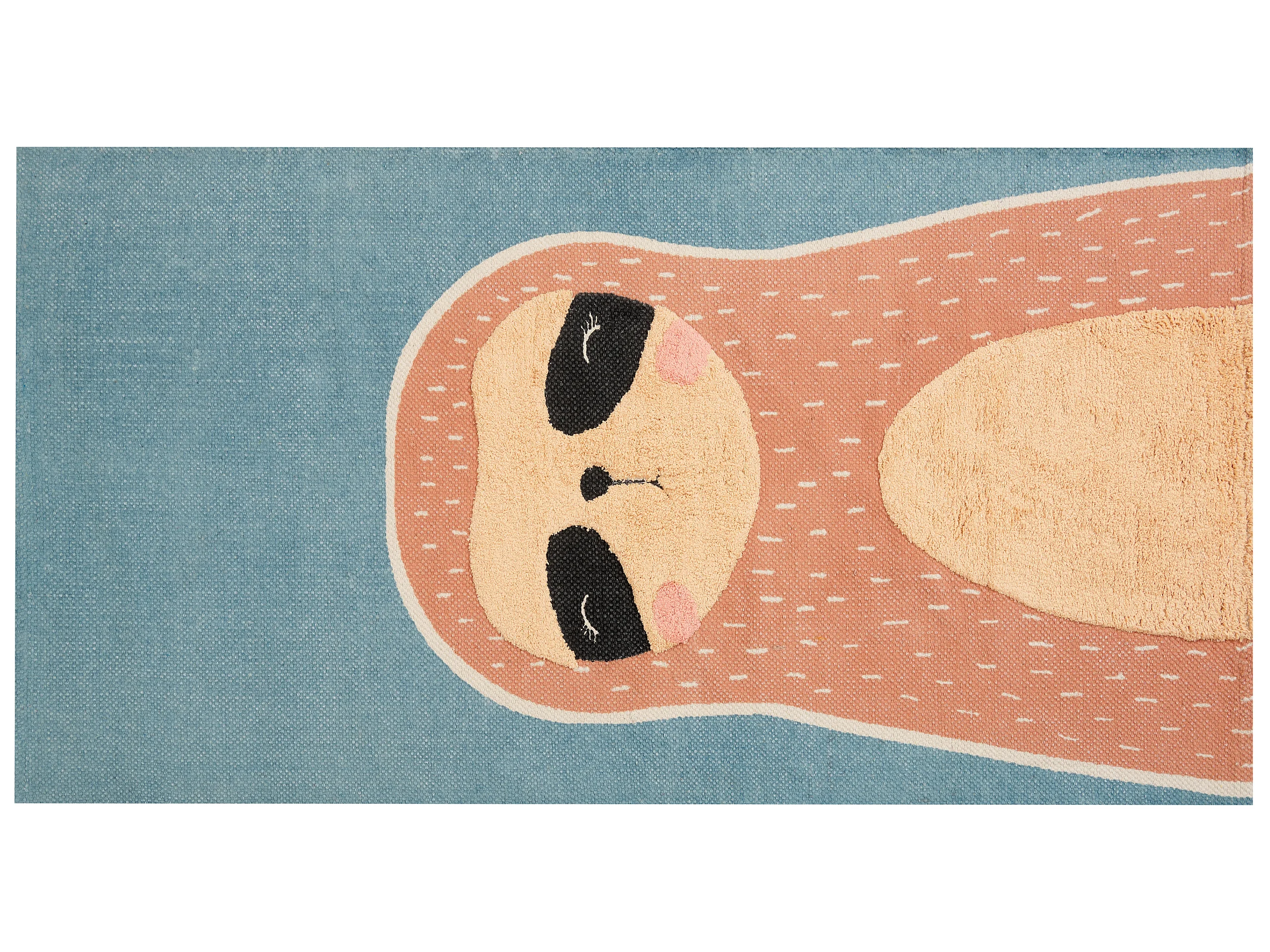 Tapete em algodão azul e laranja com motivo de preguiça 80 x 150 cm ISAK