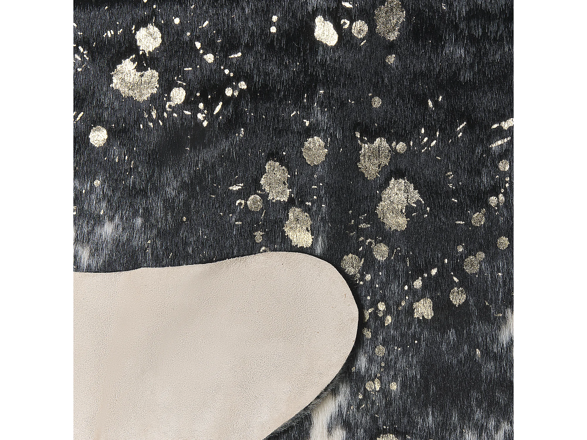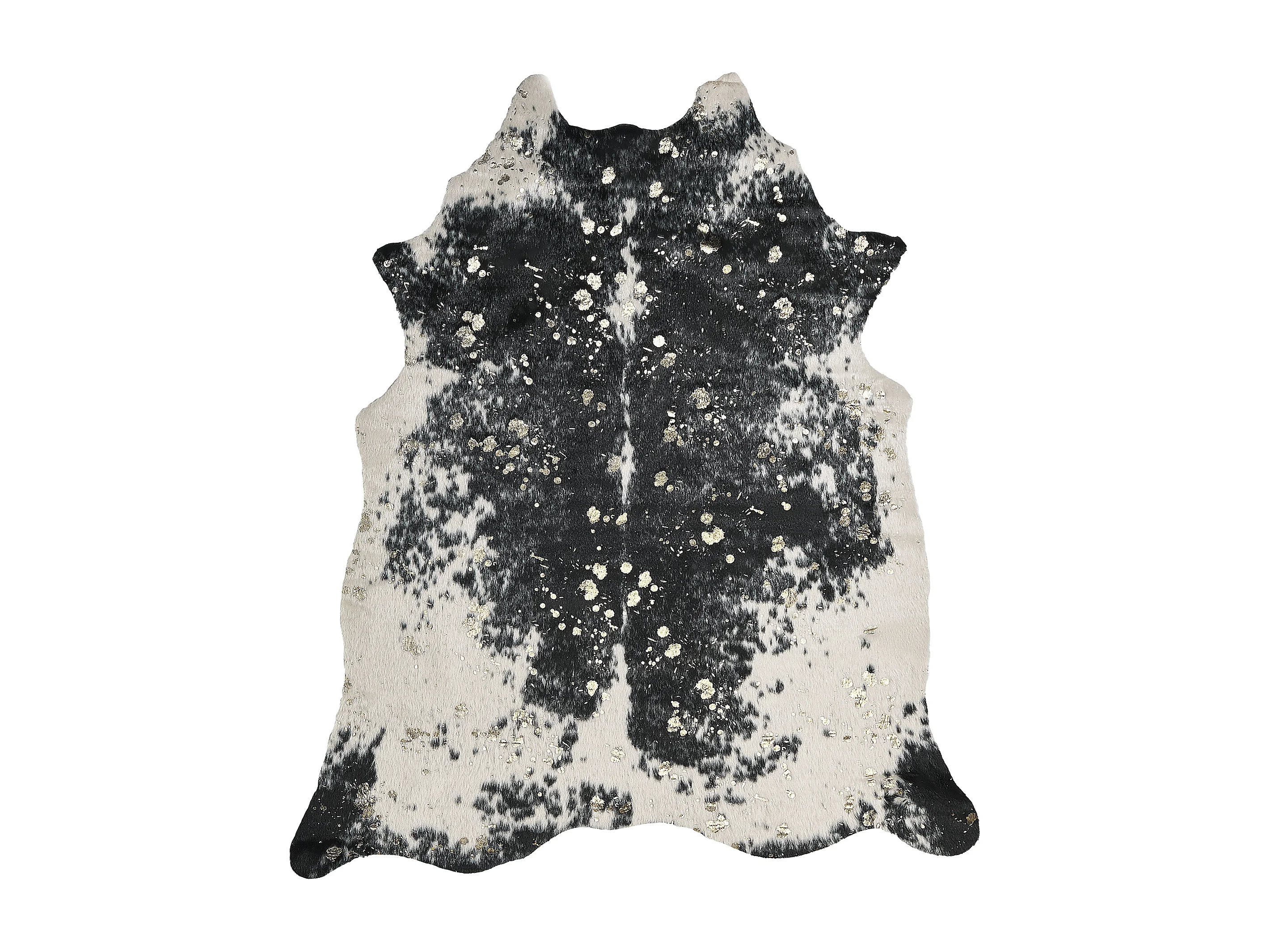 Tapete em pele sintética de vaca preta e branca e dourado 130 x 170 cm BOGONG