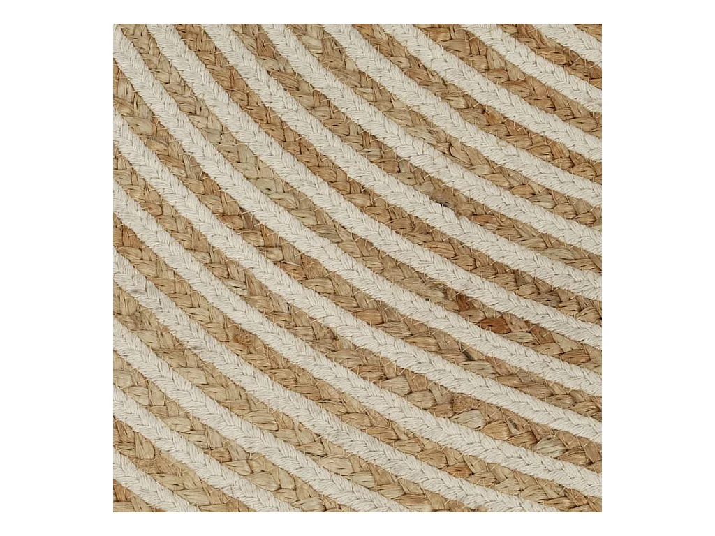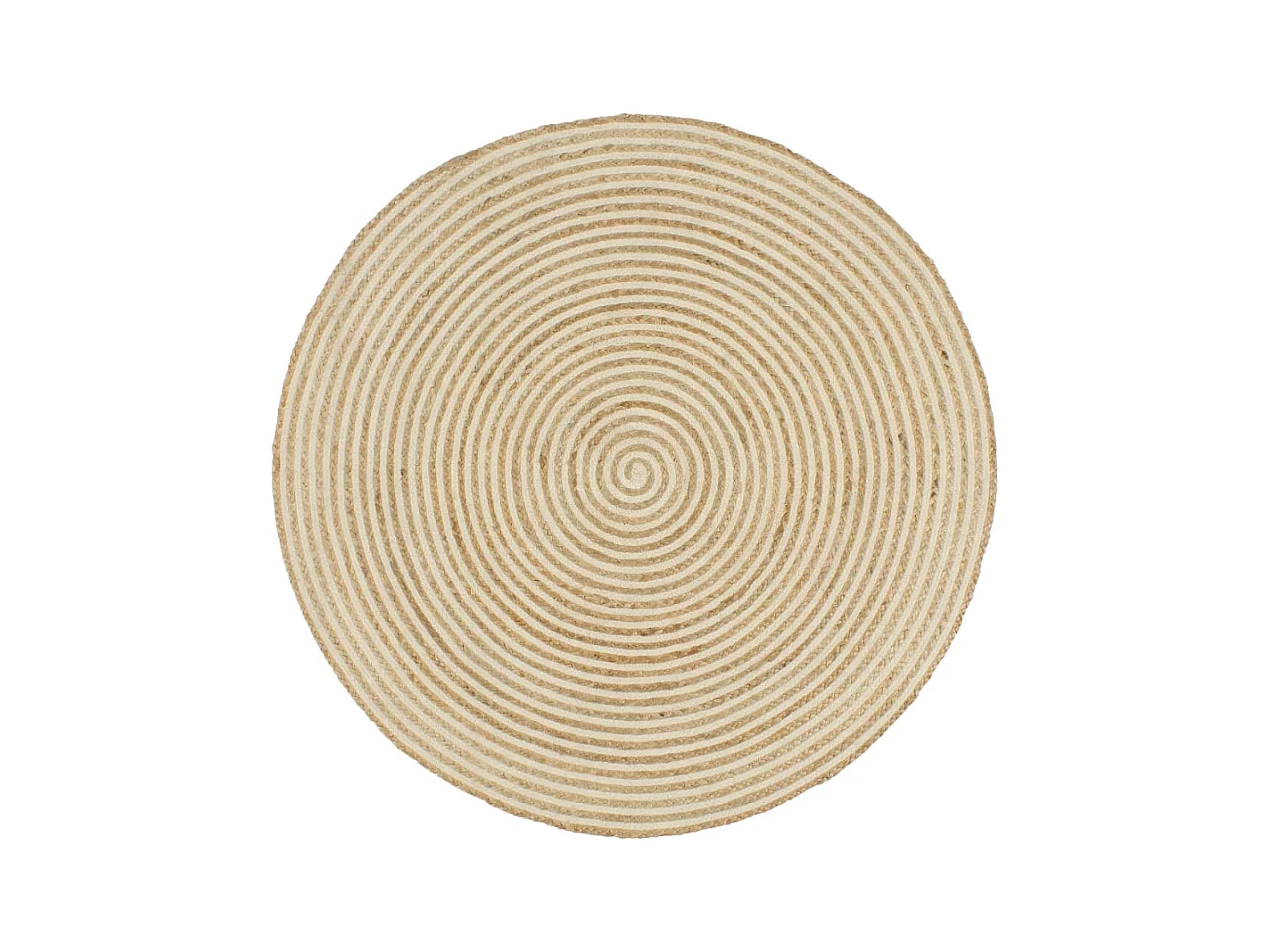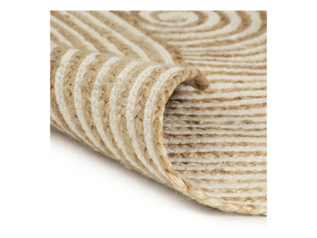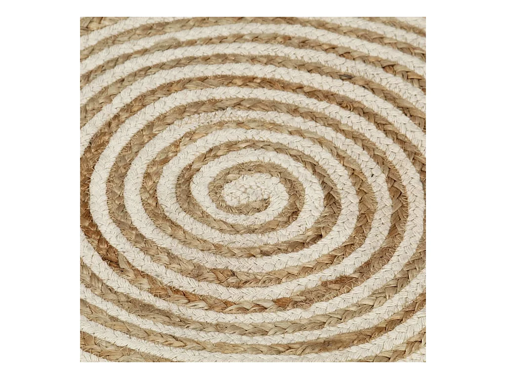 Tapete feito à mão de juta com desenho em espiral branco 120 cm