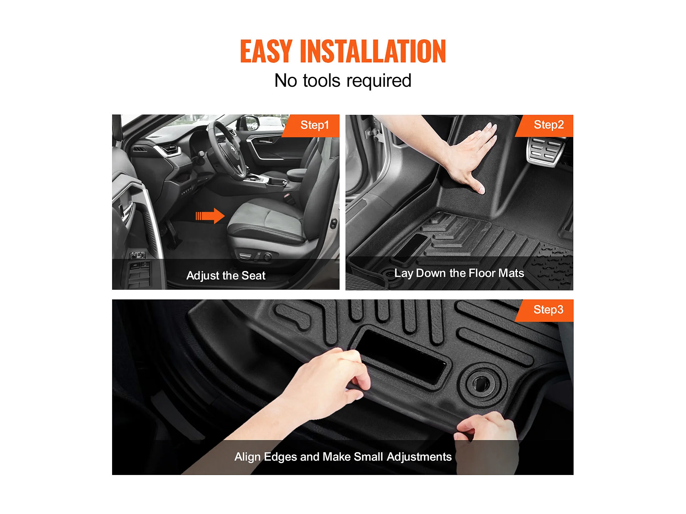 Tapetes para Automóveis SucceBuy Forros Dianteiros e da 2.ª Fila em TPE Personalizados, 3 Peças, Adequados para Toyota RAV4 2019-2024, Preto