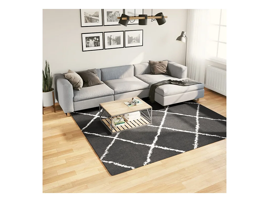 Tapete shaggy de pelo alto 120x120 cm preto e creme