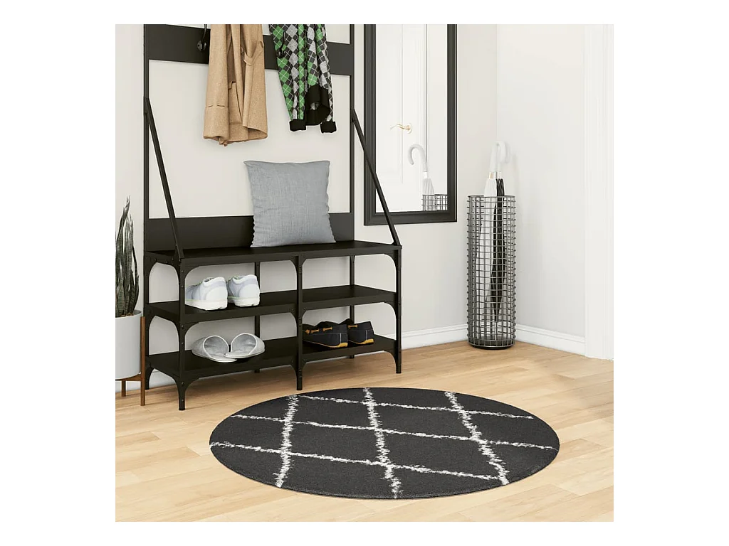 Tapete shaggy de pelo alto Ø 100 cm bege e antracite
