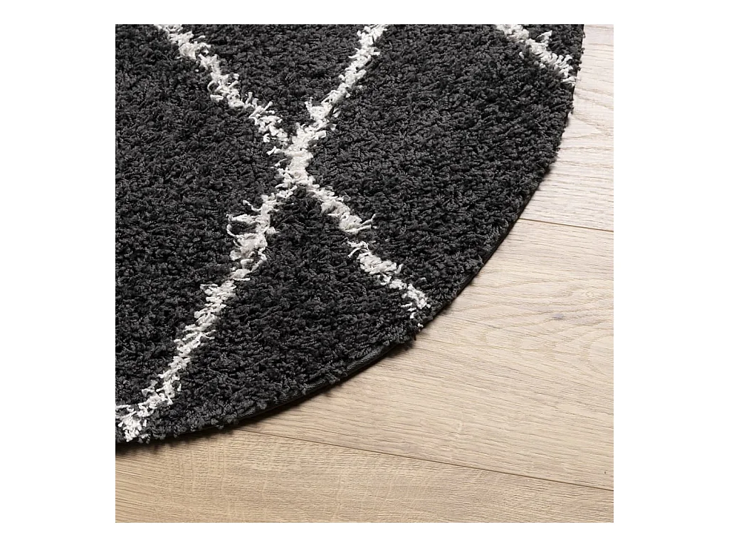 Tapete shaggy de pelo alto Ø 200 cm preto e creme