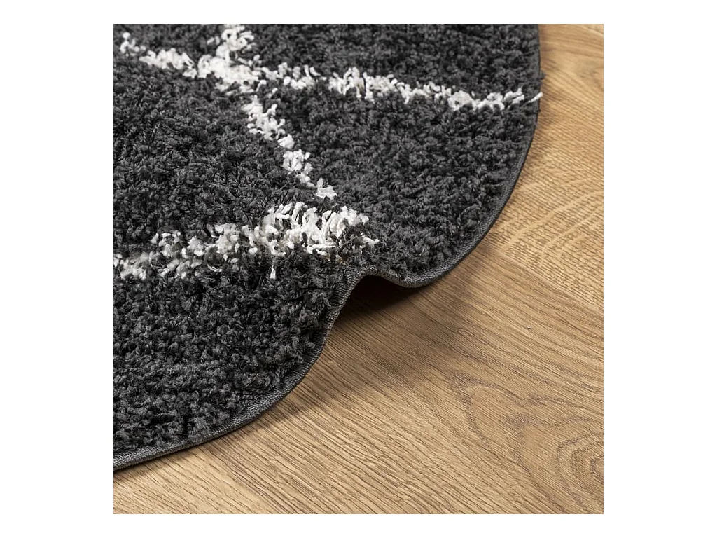 Tapete shaggy de pelo alto Ø 120 cm preto e creme