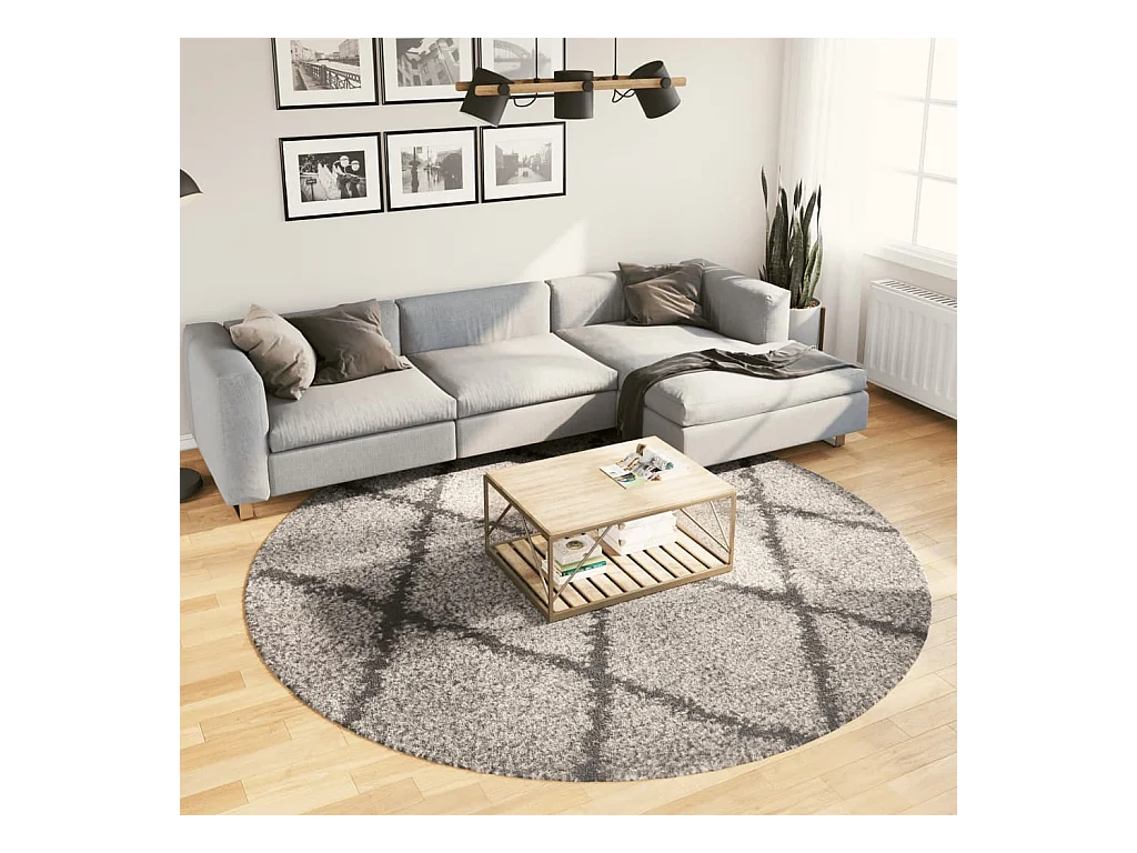 Tapete shaggy de pelo alto Ø 280 cm bege e antracite