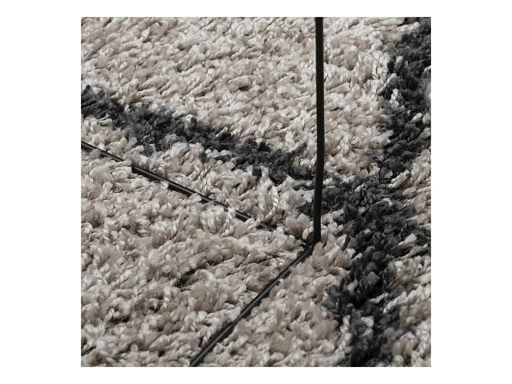 Tapete shaggy de pelo alto Ø 280 cm preto e creme