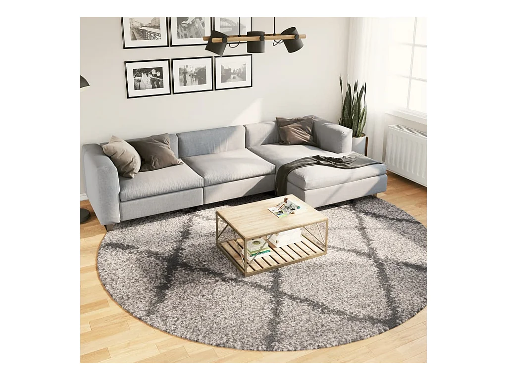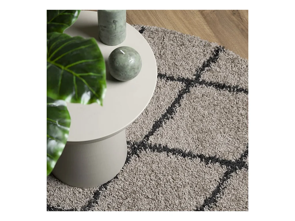 Tapete shaggy de pelo alto Ø 280 cm bege e antracite