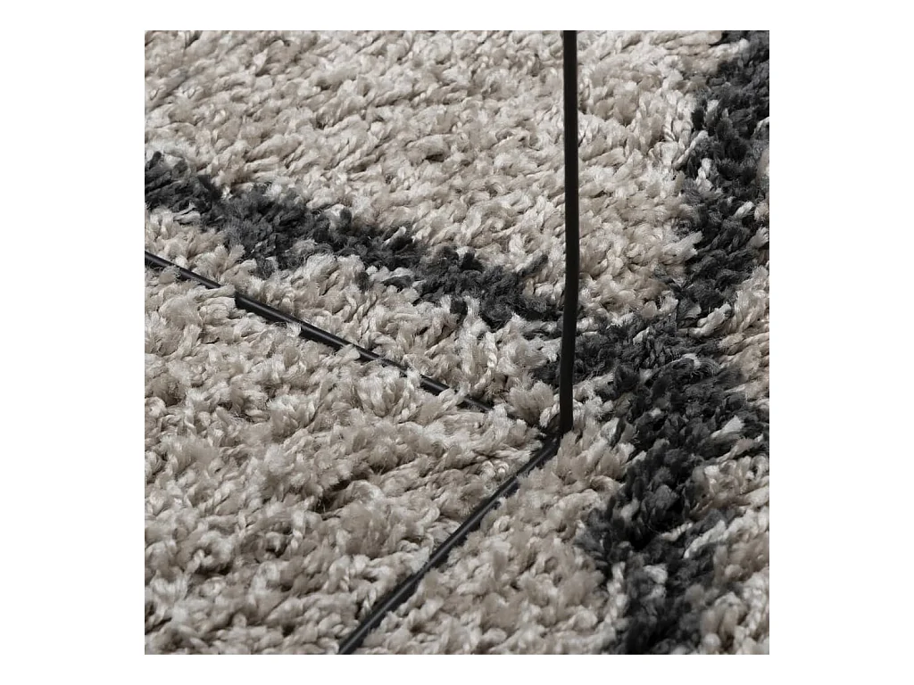 Tapete shaggy de pelo alto Ø 280 cm preto e creme