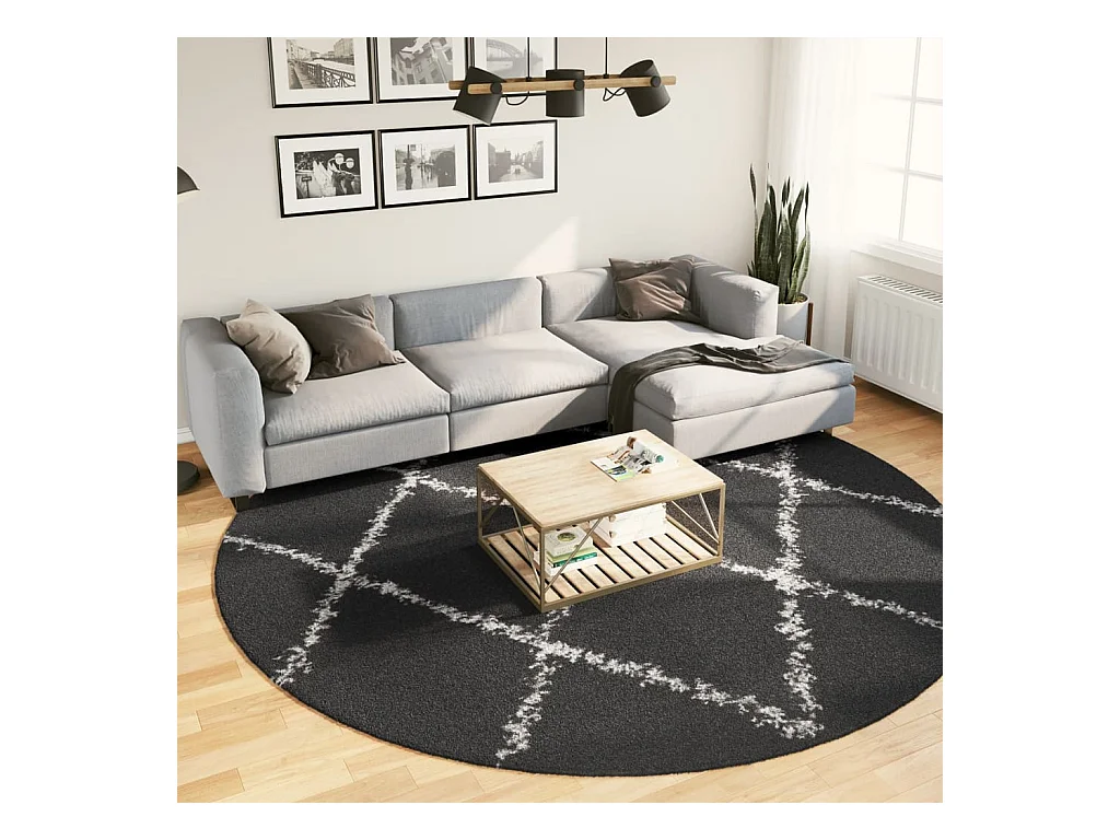 Tapete shaggy de pelo alto Ø 200 cm preto e creme