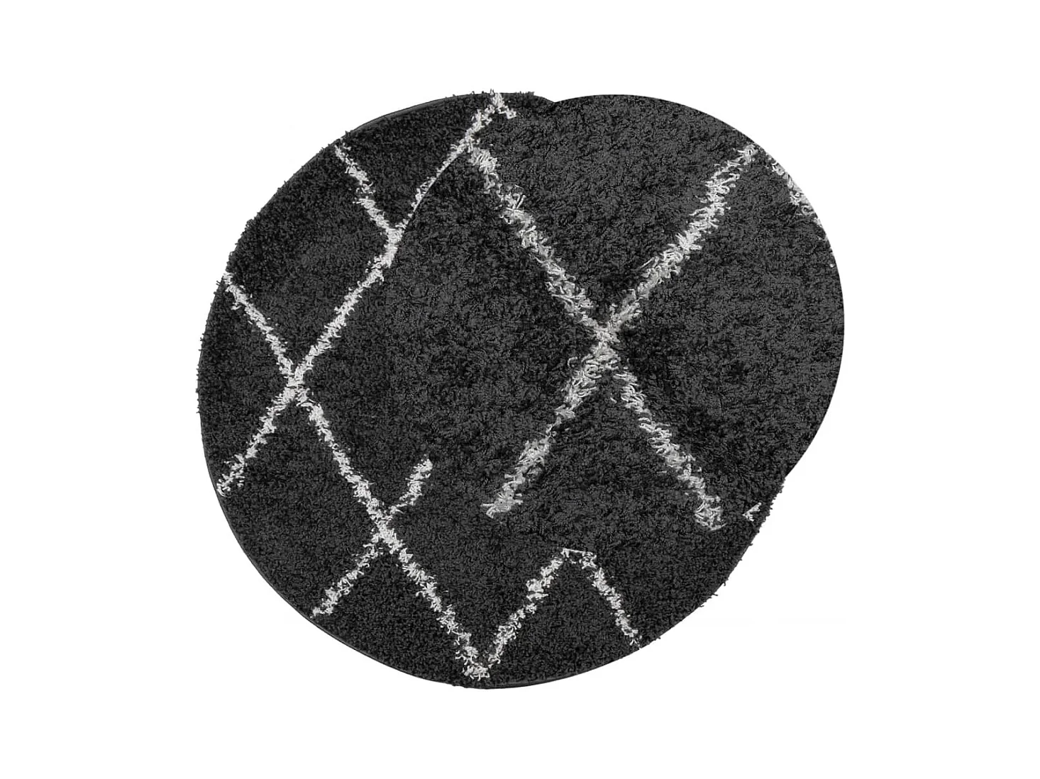 Tapete shaggy de pelo alto Ø 120 cm preto e creme