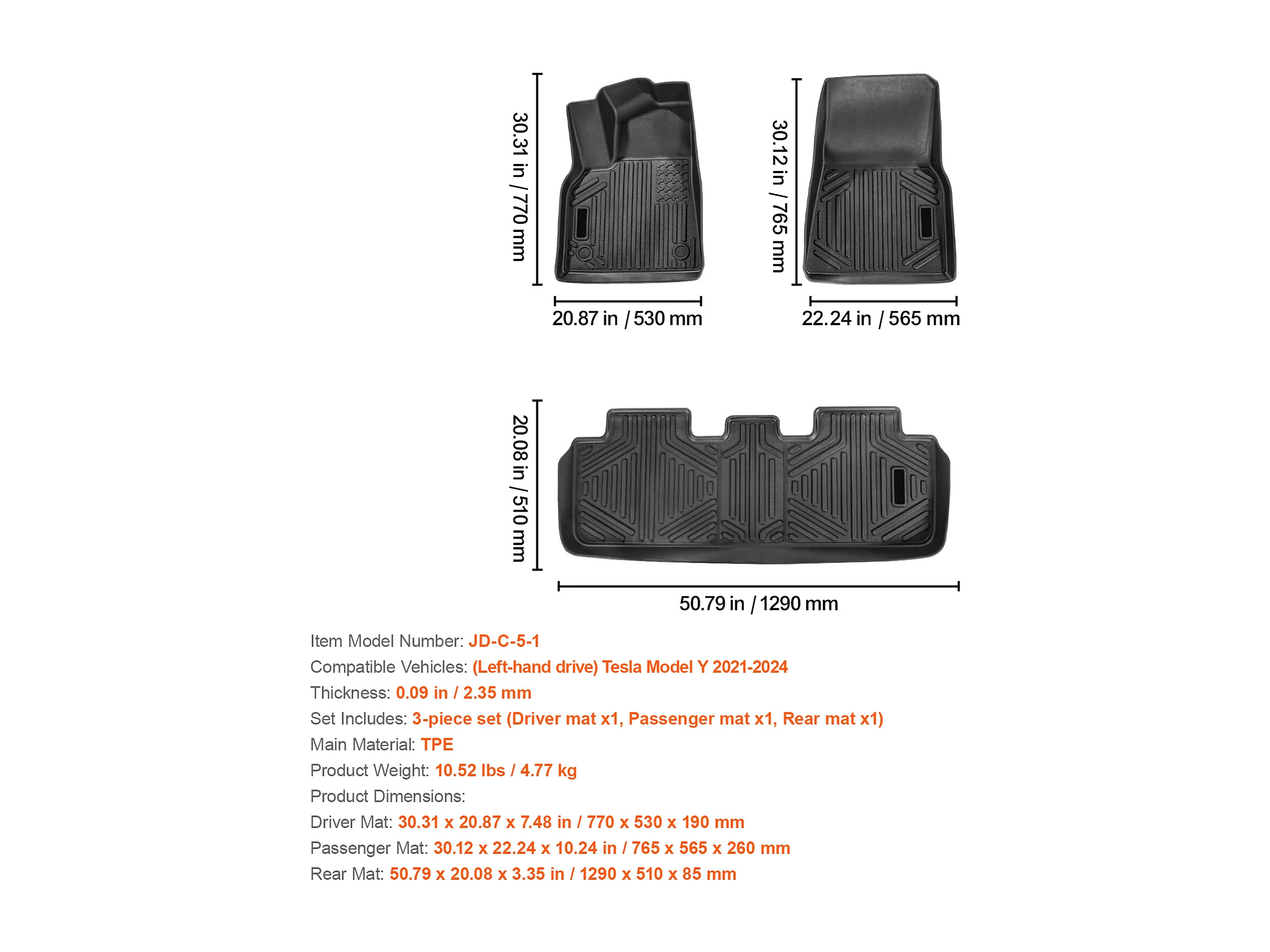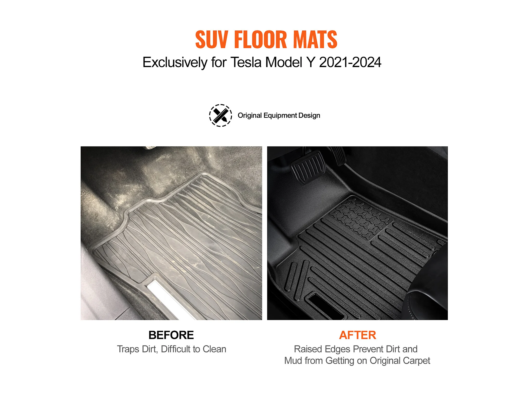 Tapetes para Automóveis SucceBuy, Adequados para o Modelo Tesla Y 2021-2024, 3 Peças, Forros em TPE