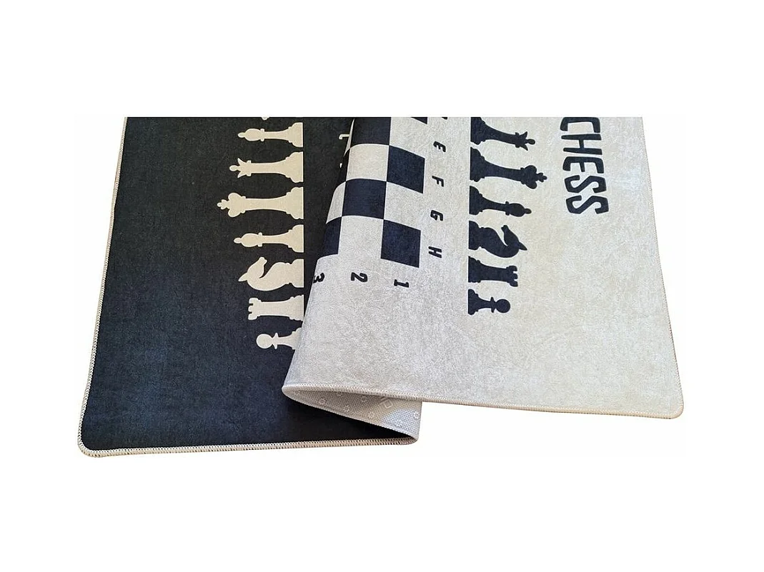 Tapete para quarto de criança com padrão de Xadrez Preto 80x150 cm em poliéster macio e resistente com características antiderrapantes