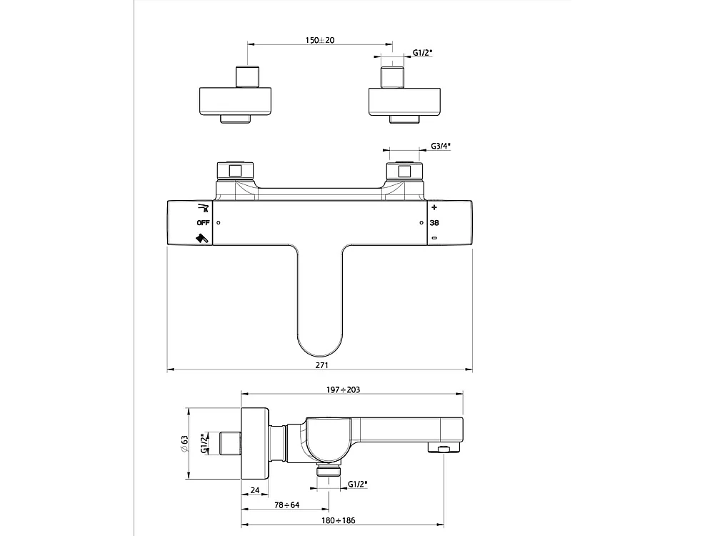 Tempo Misturador termostático para banheira e duche cromado Huber