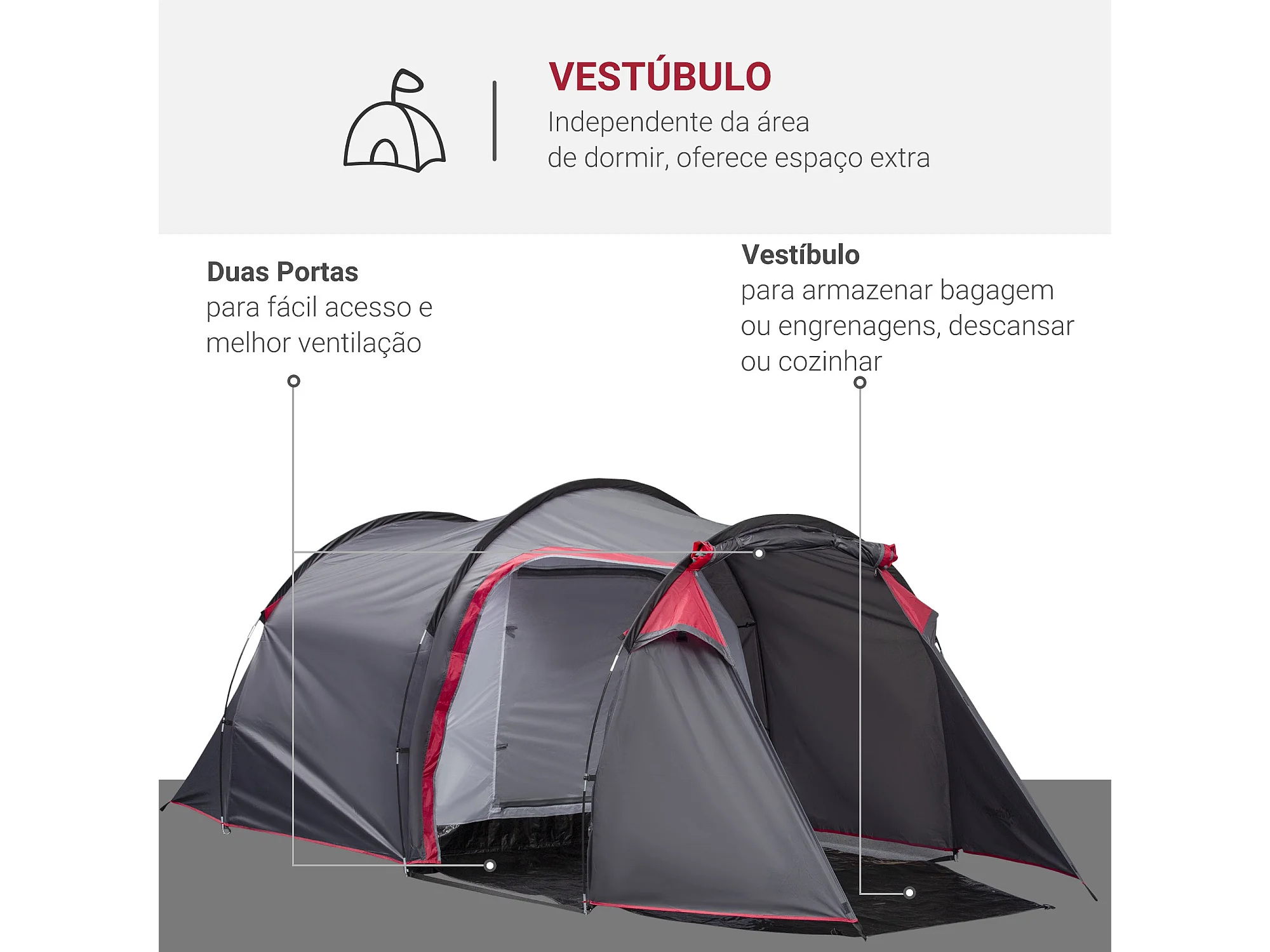 Tenda de Campismo Impermeável para 2-3 Pessoas com UV 20+ e Vestíbulo