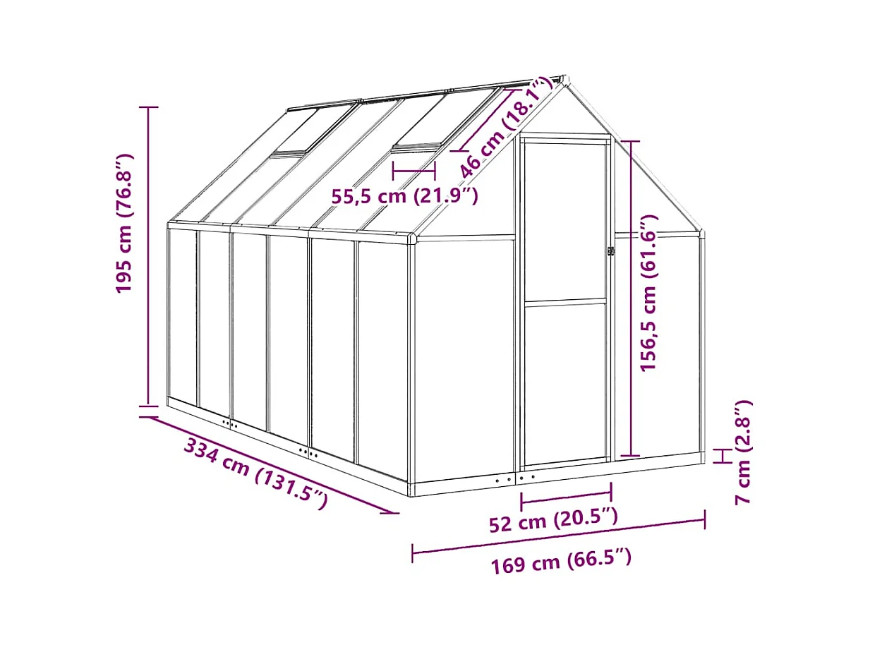 Tenda de estufa abrigo para plantas flores vegetais com estrutura de base 334 x 169 x 195 cm alumínio verde 02_0044502