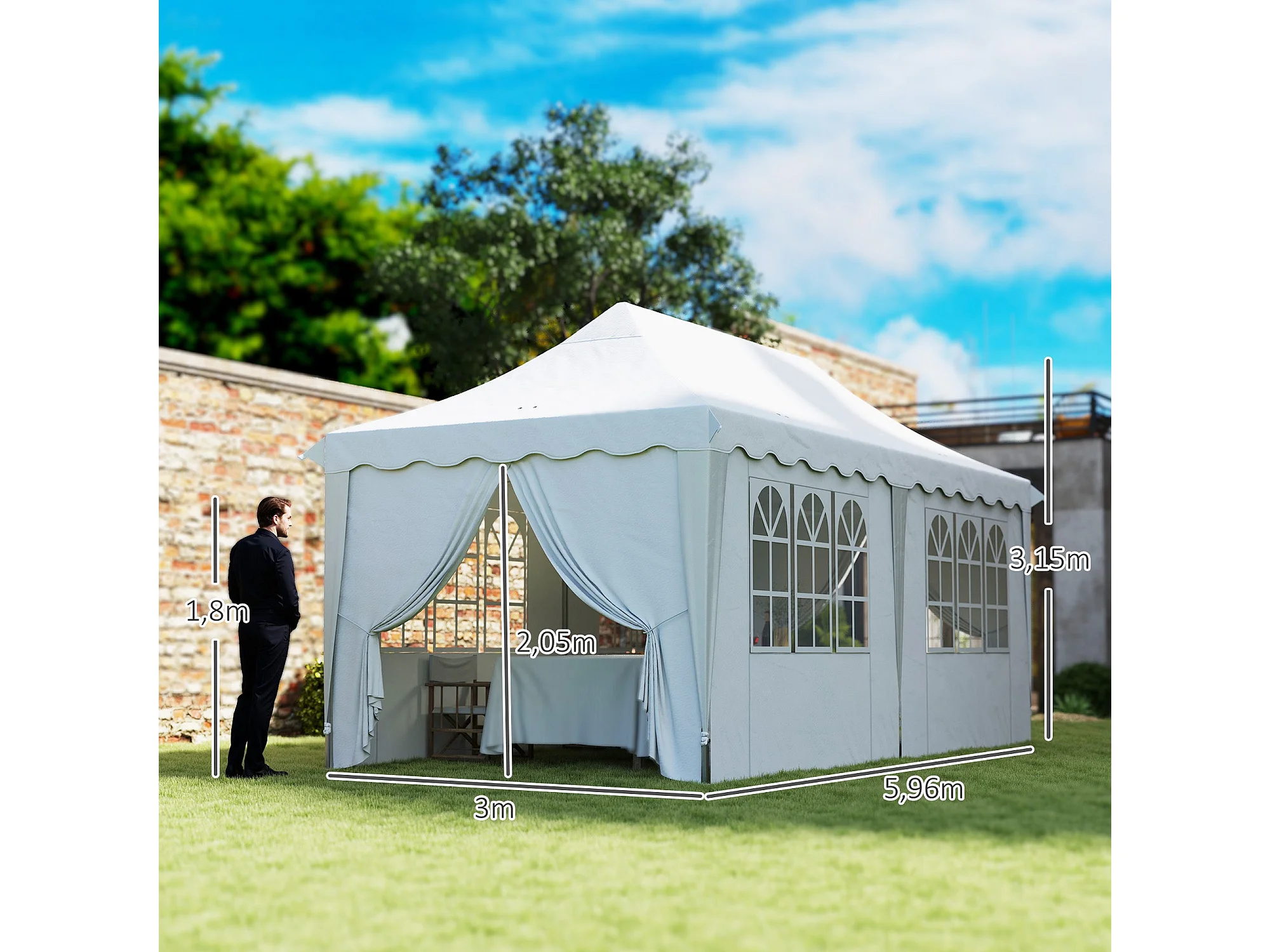 Tenda Dobrável Pop Up 596x300x315 cm com Proteção UV e Estrutura Ajustável para Eventos ao Ar Livre
