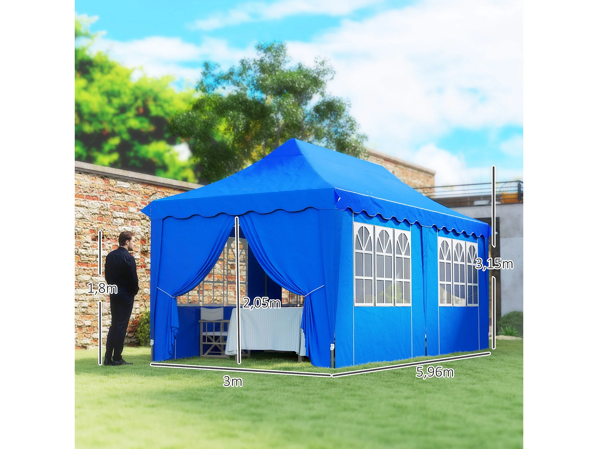 Tenda Dobrável Pop Up Azul 596x300x315 cm Para Festas e Campismo com Proteção UV e Altura Ajustável