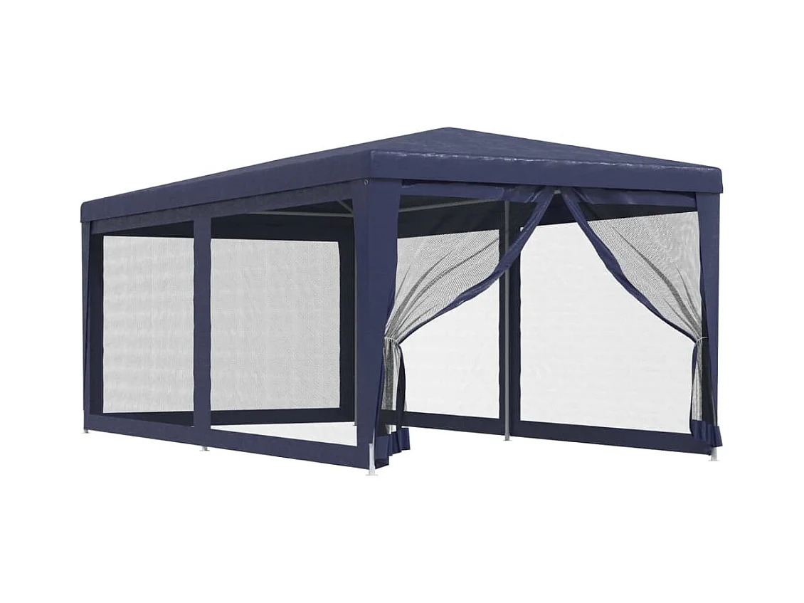 Tenda para festas c/ 6 paredes laterais em rede 3x6 m PEAD azul PT580585