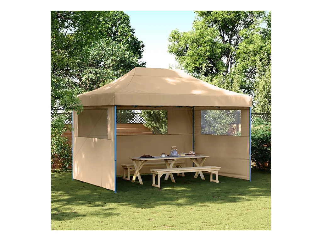 Tenda para festas pop-up dobrável com 3 paredes laterais bege PT812149