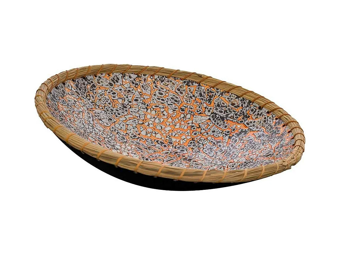 Centro de mesa em cerâmica prateada 38x26,5x5,5