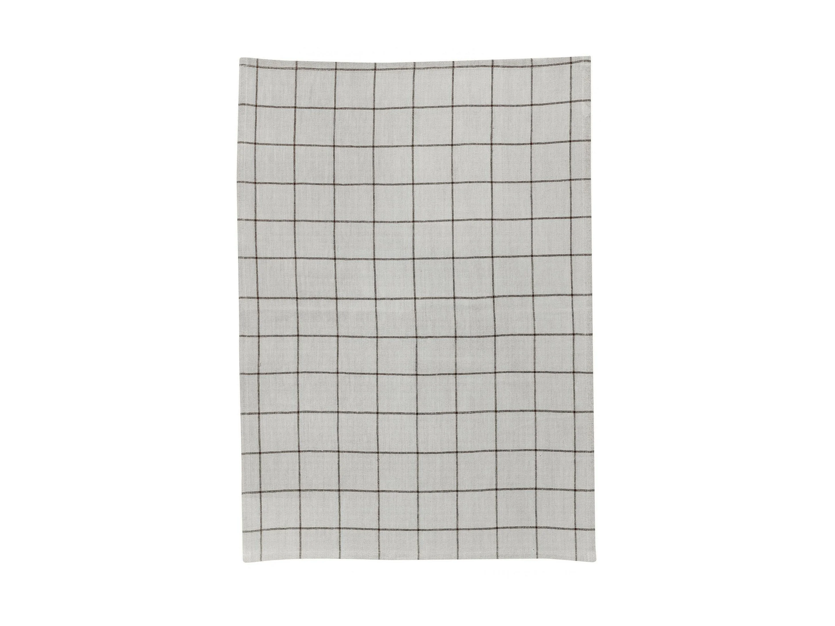 Pano de prato de linho e algodão xadrez Kilia Ecru 50 x 70 cm