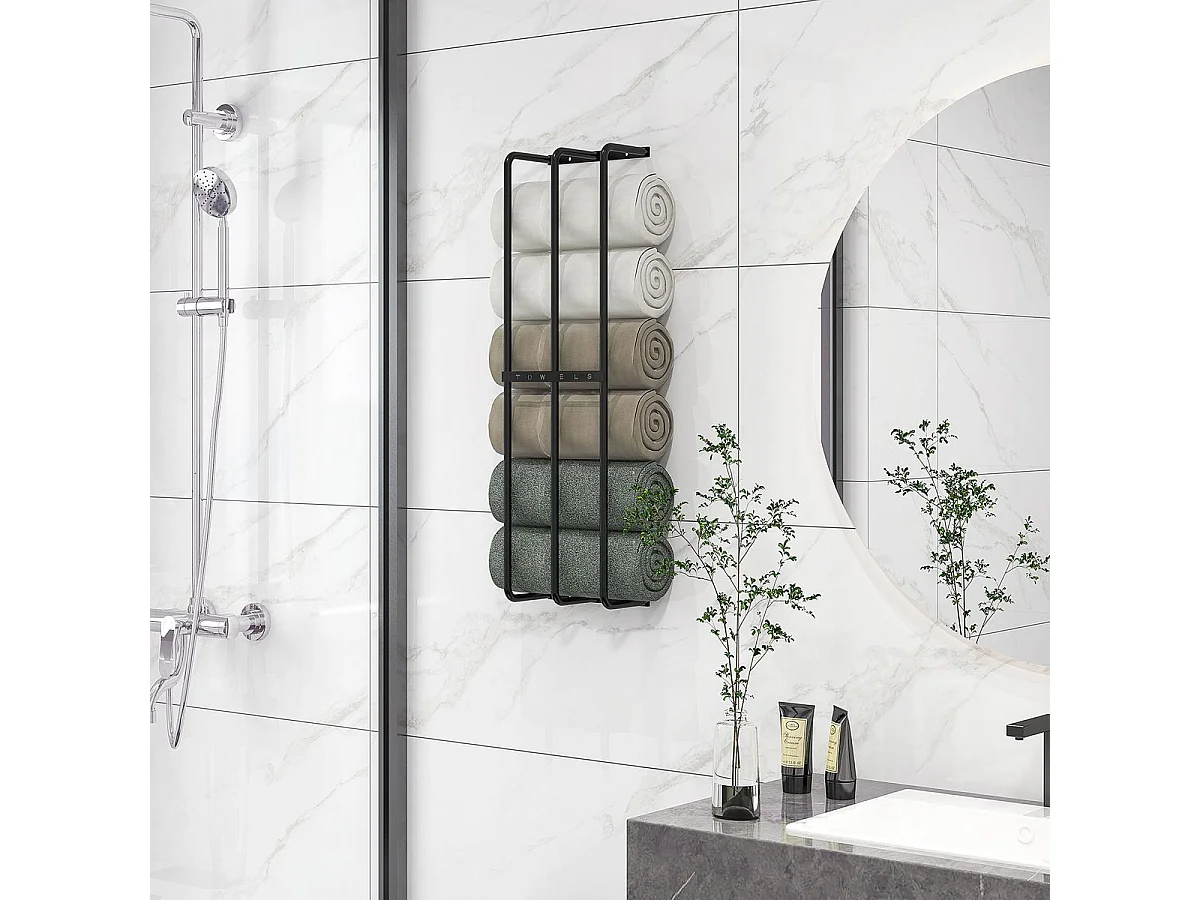 Toalheiro de Parede HOMCOM com 3 Barras - Suporte de Metal para Toalhas - Preto - 21x12x74 cm