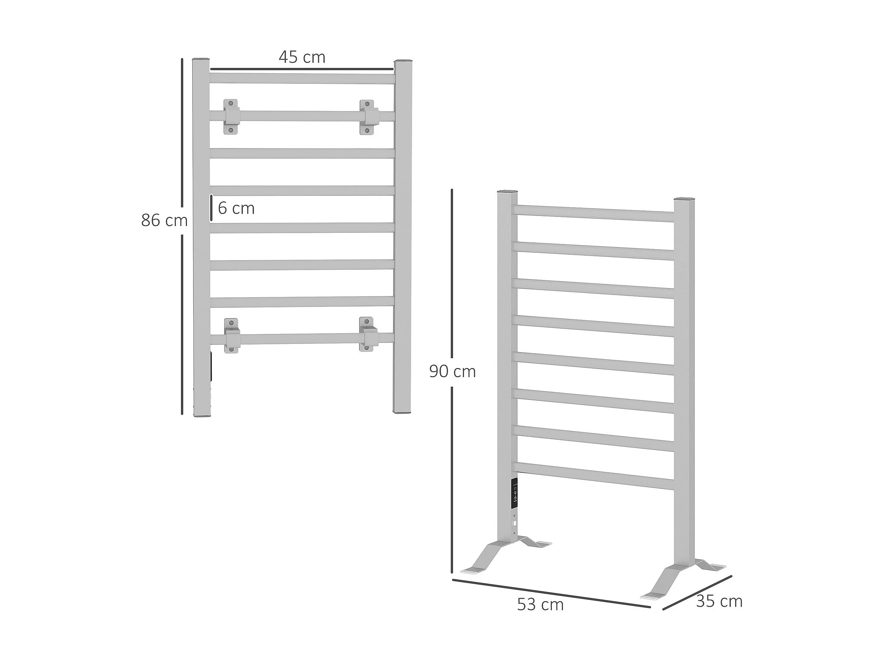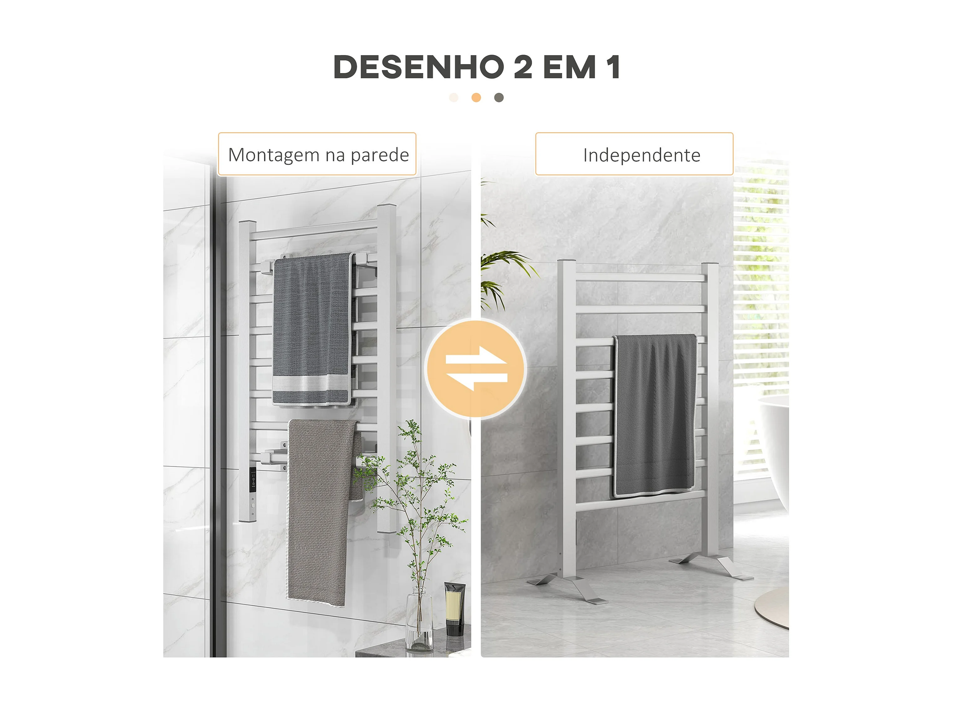 Toalheiro Elétrico ThermoLux 150W com 8 Barras - Montável na Parede ou Solo - Design Moderno em Prata