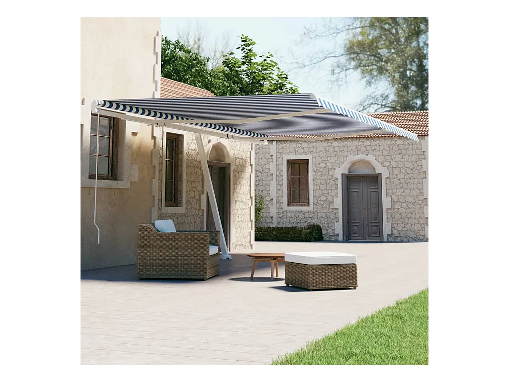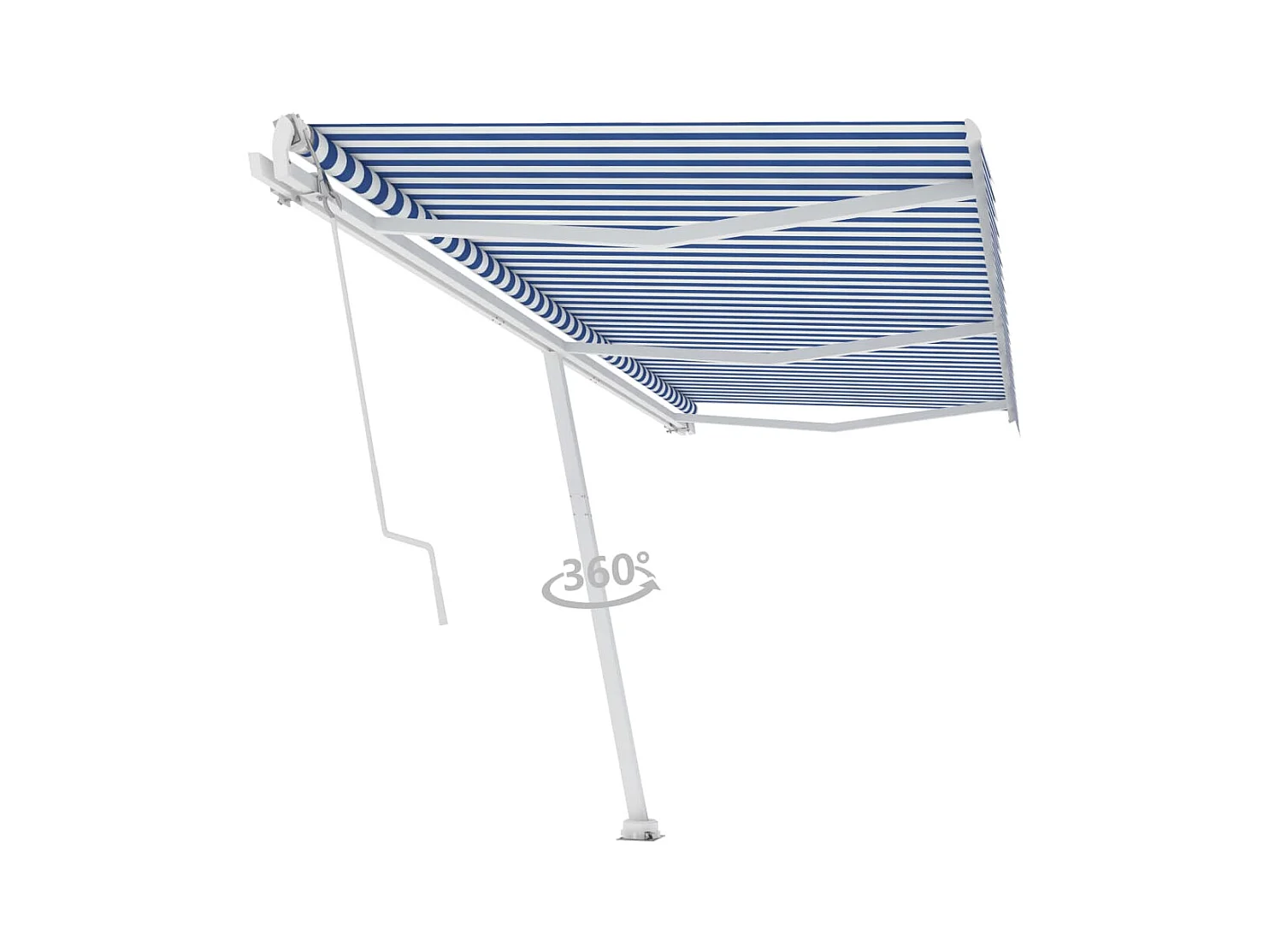 Toldo retrátil automático com postes 6x3 Azul e branco