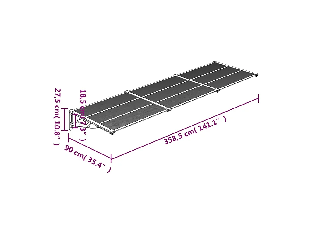 Toldo de porta Policarbonato 358,5x90 preto e transparente