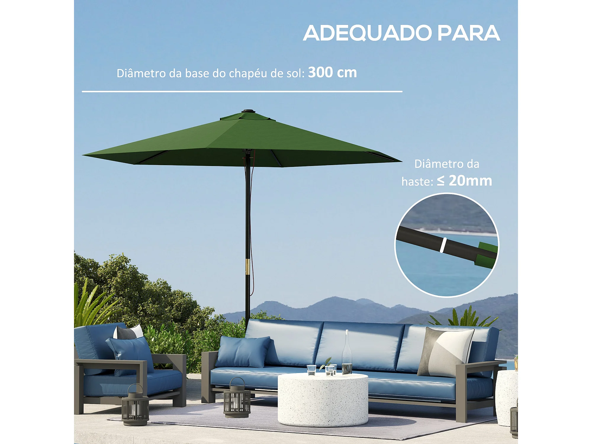 Guarda-sol de jardim com poste de madeira 300x300x273 cm verde