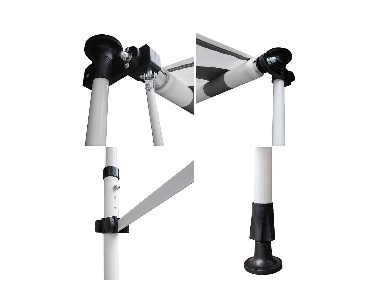 Toldo SAULE 3,95 × 3m com semi-canopy - Tecido branco/cinzento riscado e estrutura branca