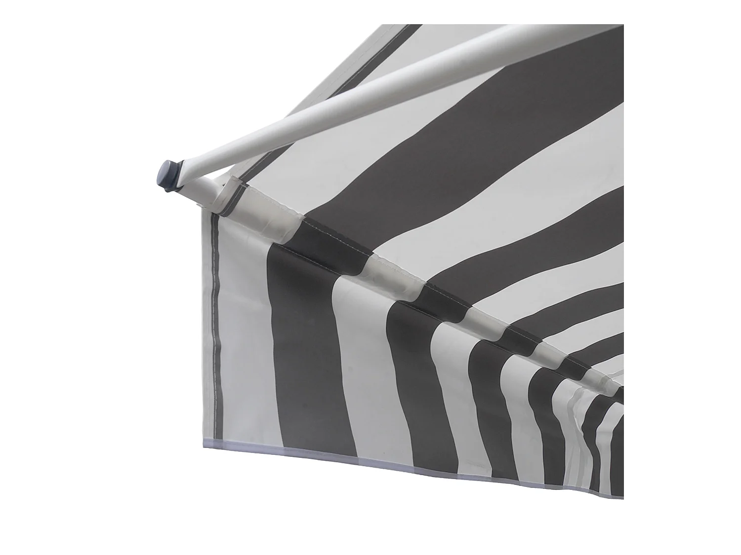 Toldo de varanda CHENE 2 × 1,2m - Tecido listrado branco/cinzento e moldura branca