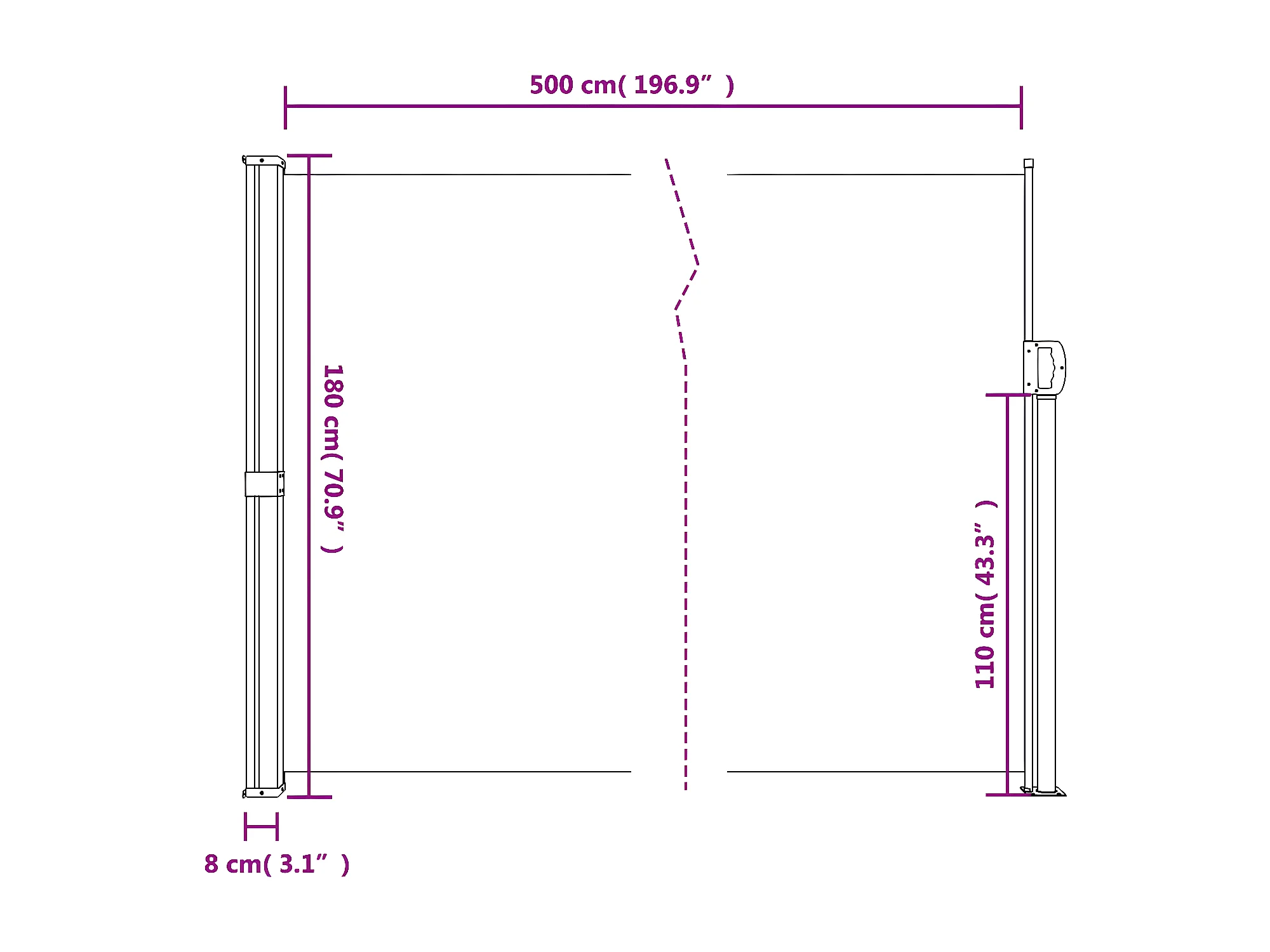 Toldo lateral retrátil 180x500 cm verde-escuro