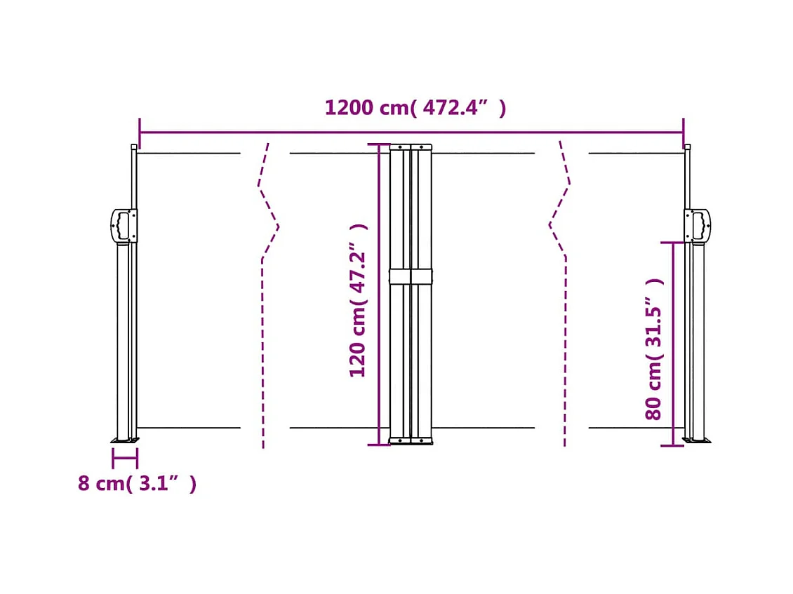 Toldo lateral retrátil para pátio 100 x 300 cm branco