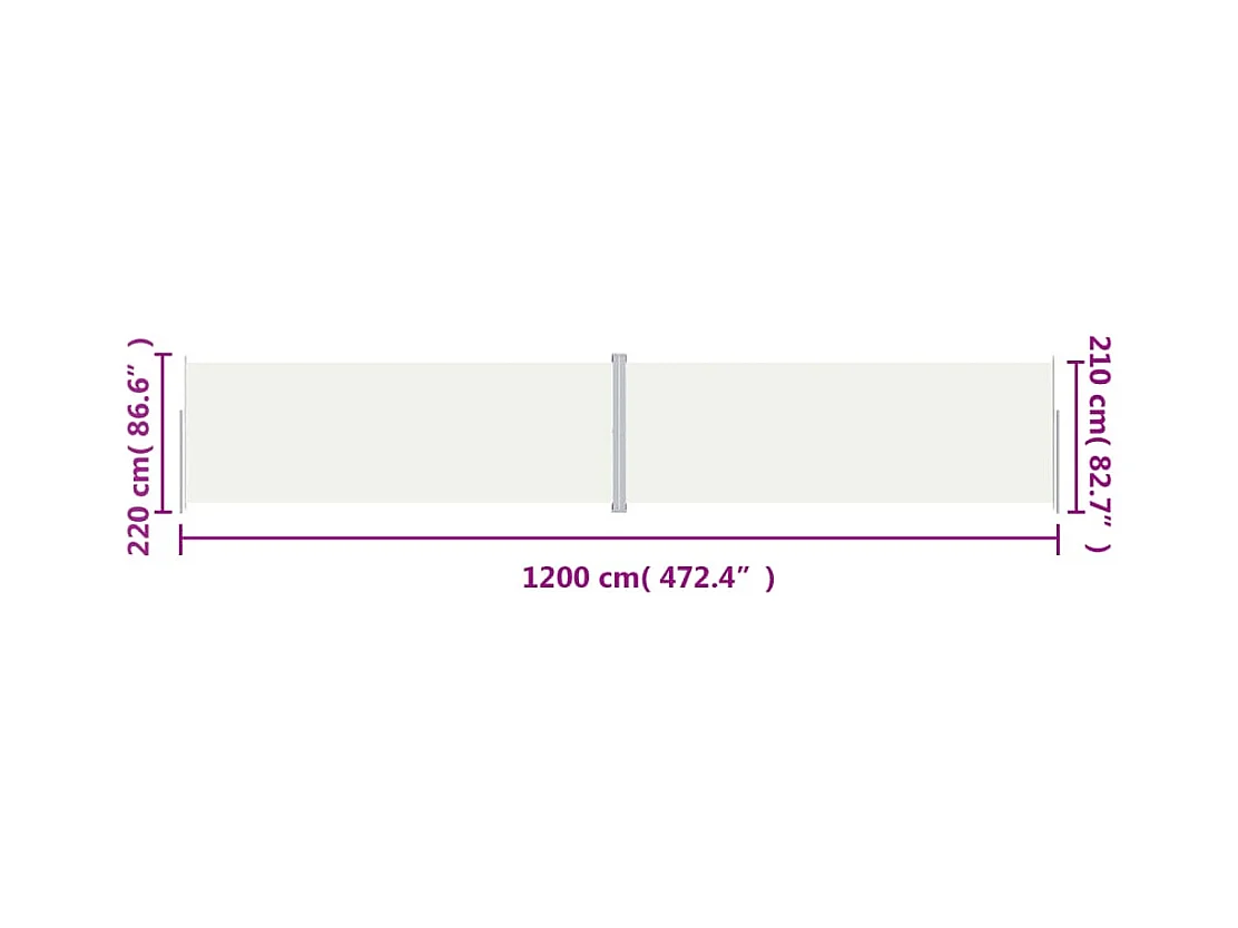 Toldo lateral retrátil para pátio 220x600 cm Creme
