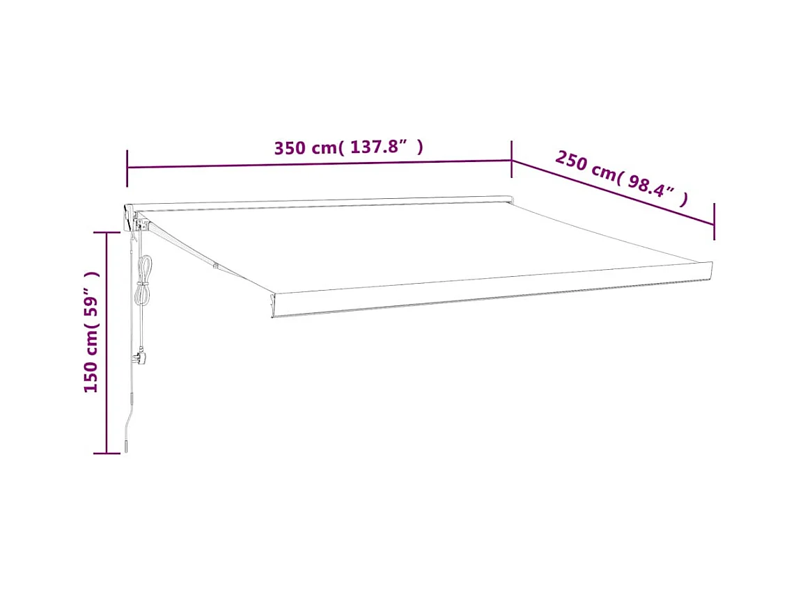 Toldo retrátil antracite e branco 3,5x2,5m tecido/alumínio