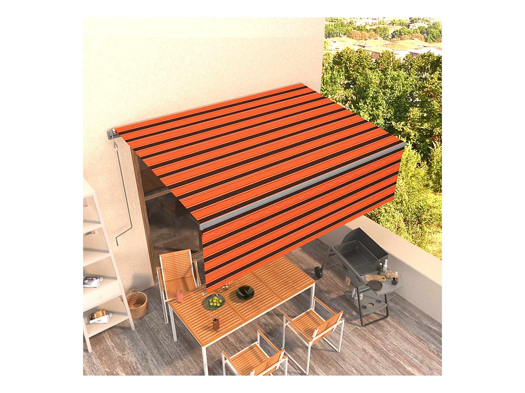 Toldo retrátil manual com estore/LED 4,5x3 m laranja/castanho