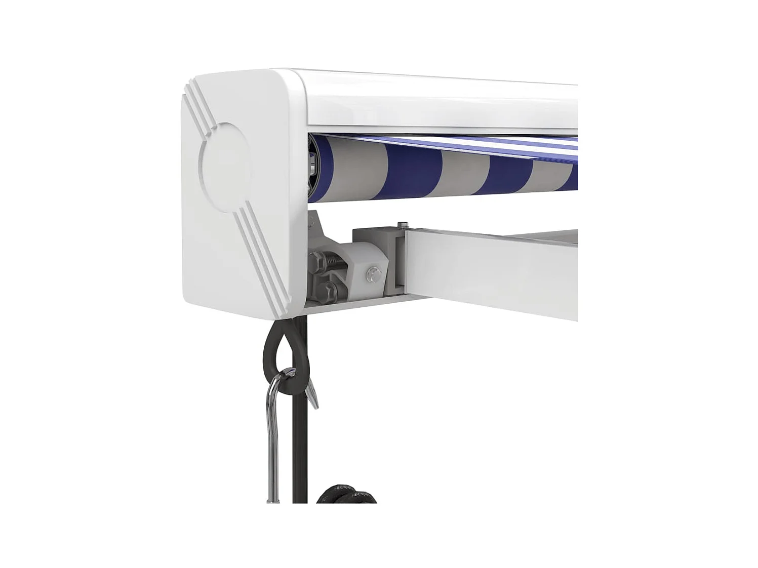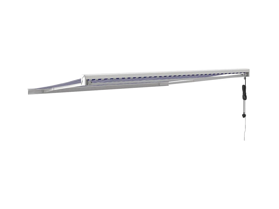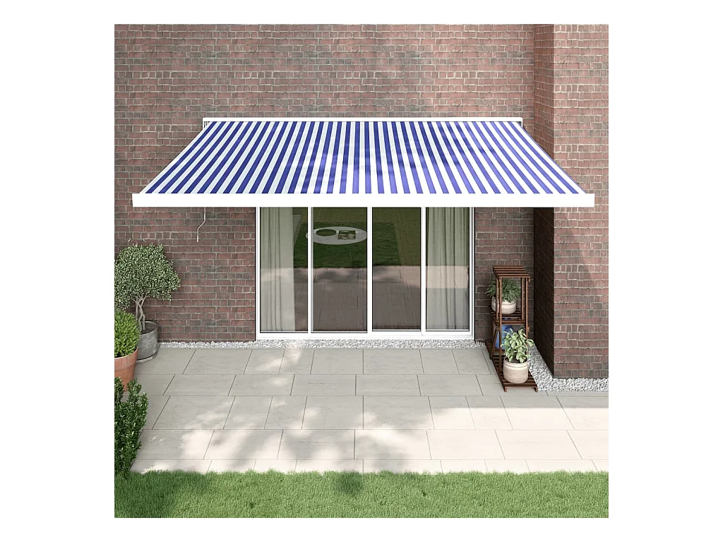 Toldo retrátil azul e branco 4x3 em tecido e alumínio