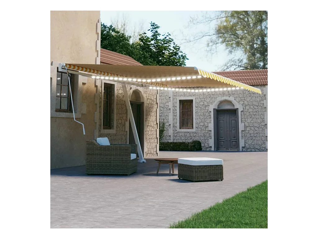 Toldo Retrátil Manual Amarelo e Branco com Iluminação LED 500x300 cm