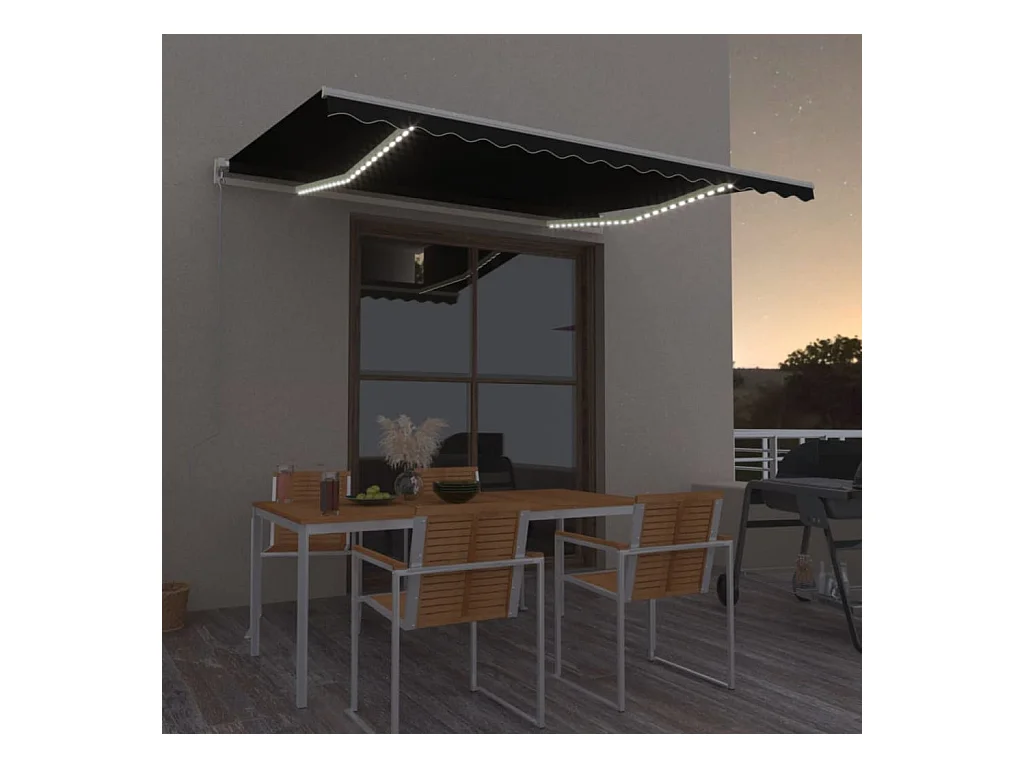 Toldo retrátil manual com luzes LED 4,5x3 m antracite