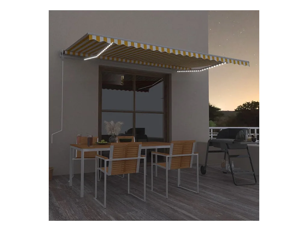 Toldo Retrátil Manual com Iluminação LED Amarelo e Branco 500x300 cm