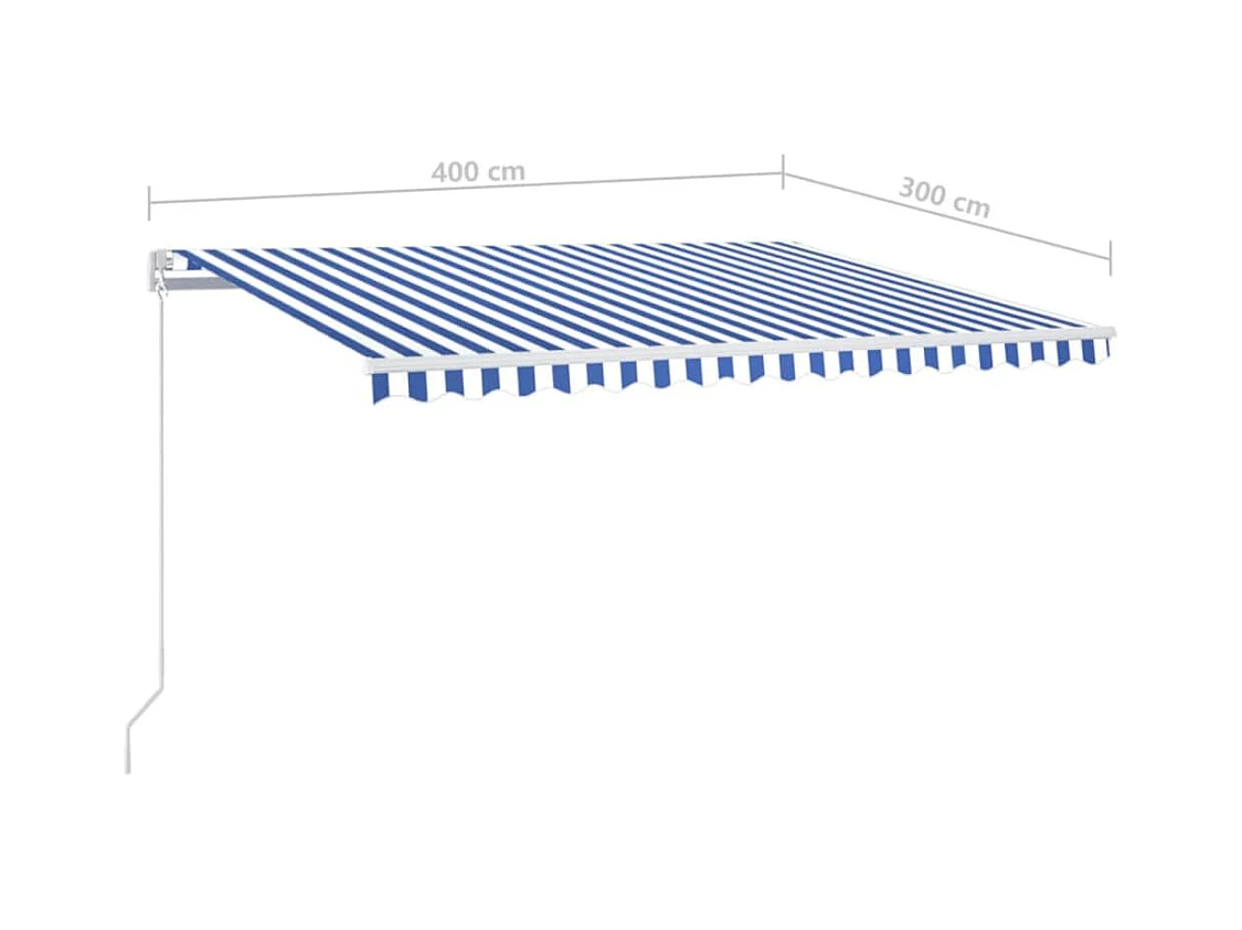 Toldo retrátil manual com LED 400x300 cm azul e branco
