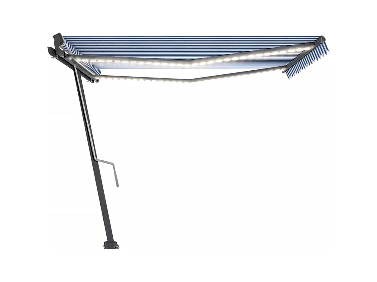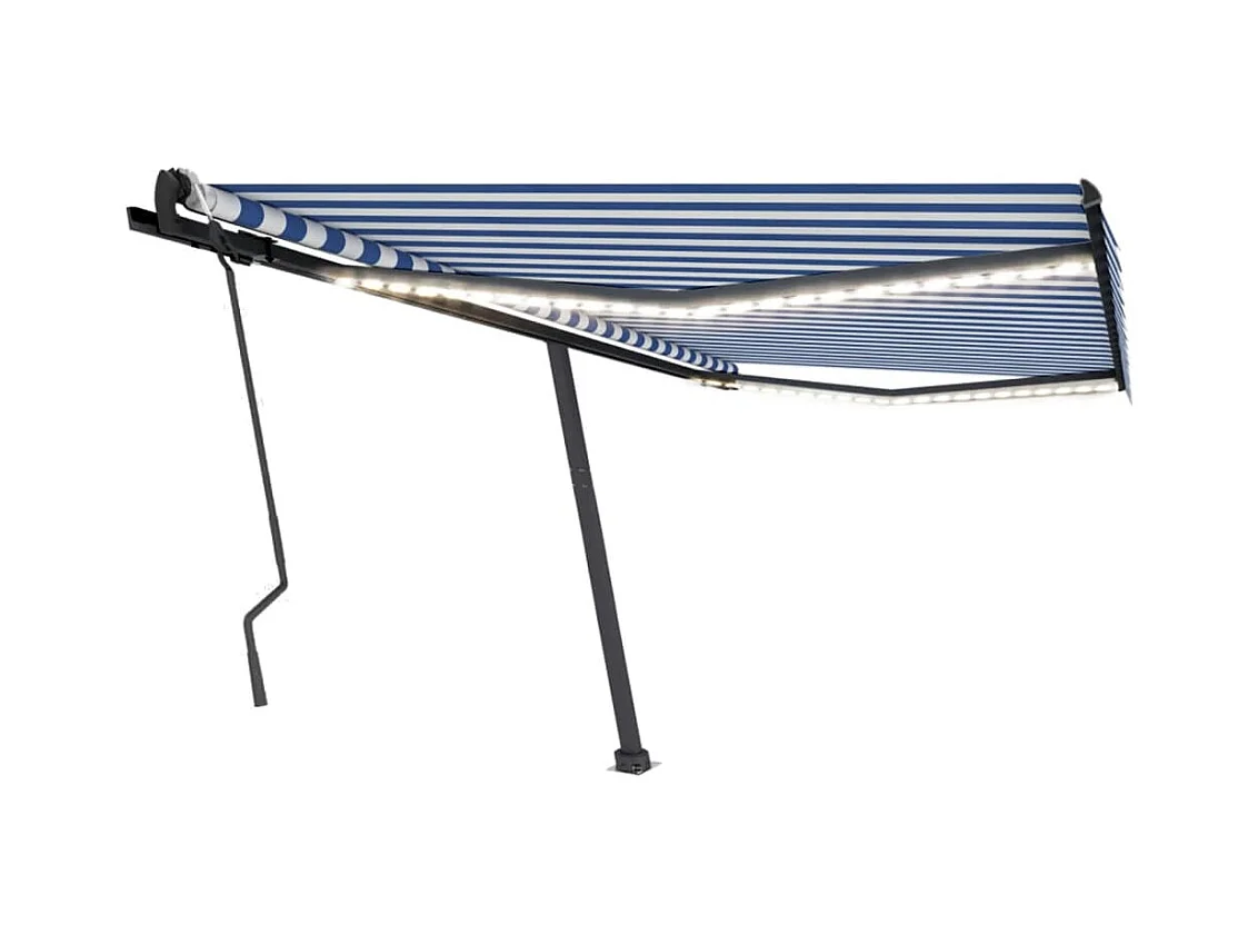 Toldo retrátil manual com LED 400x300 cm azul e branco