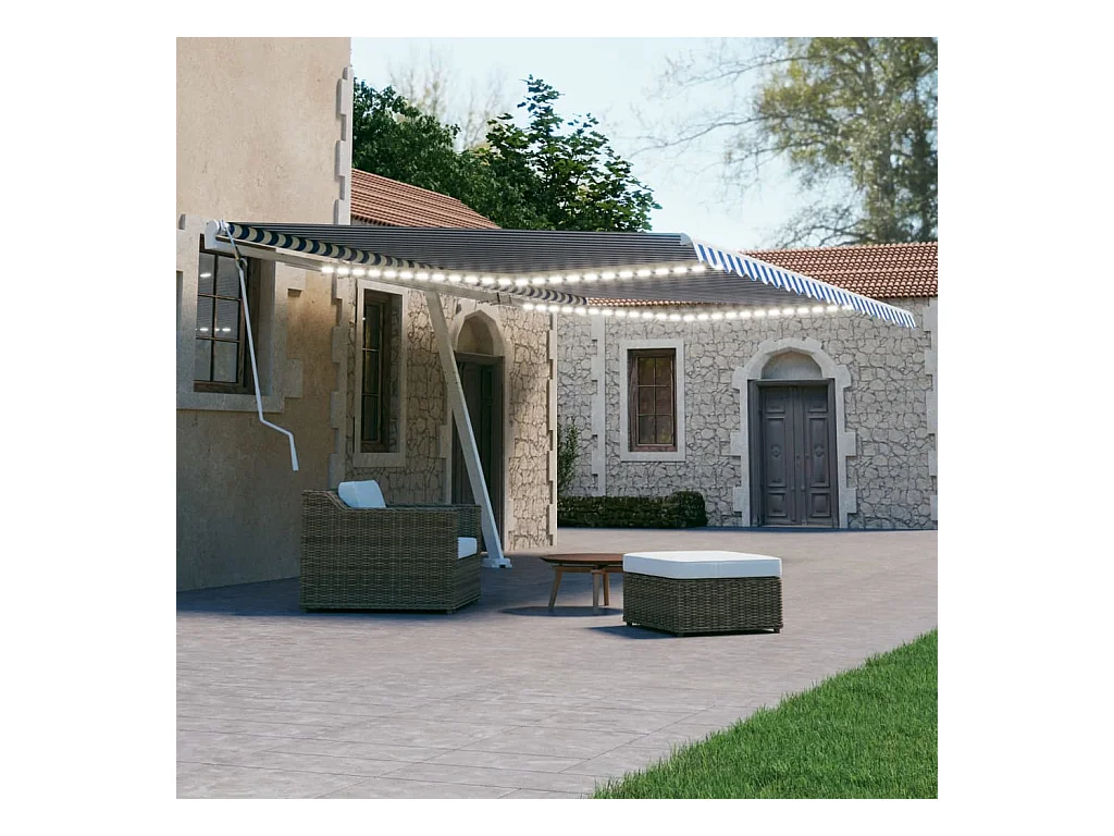Toldo retrátil manual com LED 500x300 cm azul e branco