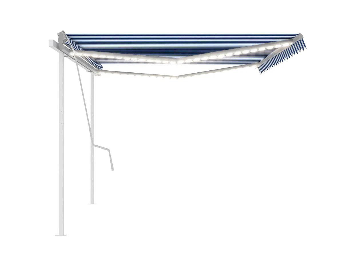 Toldo retrátil manual com LED 500x350 cm azul e branco