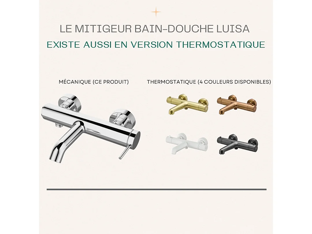 Oneo Torneira de banheira termostática duche cromado Essebagno