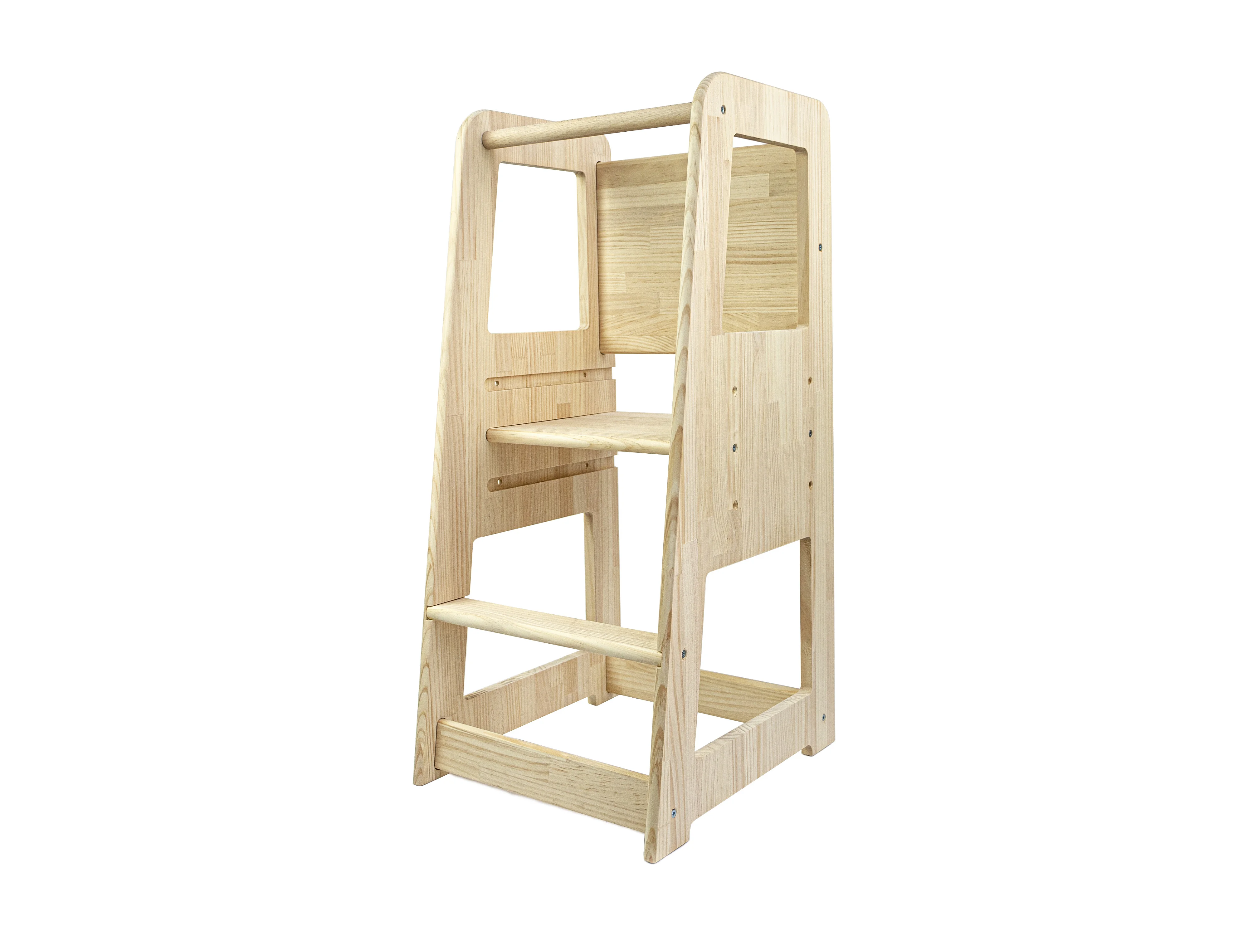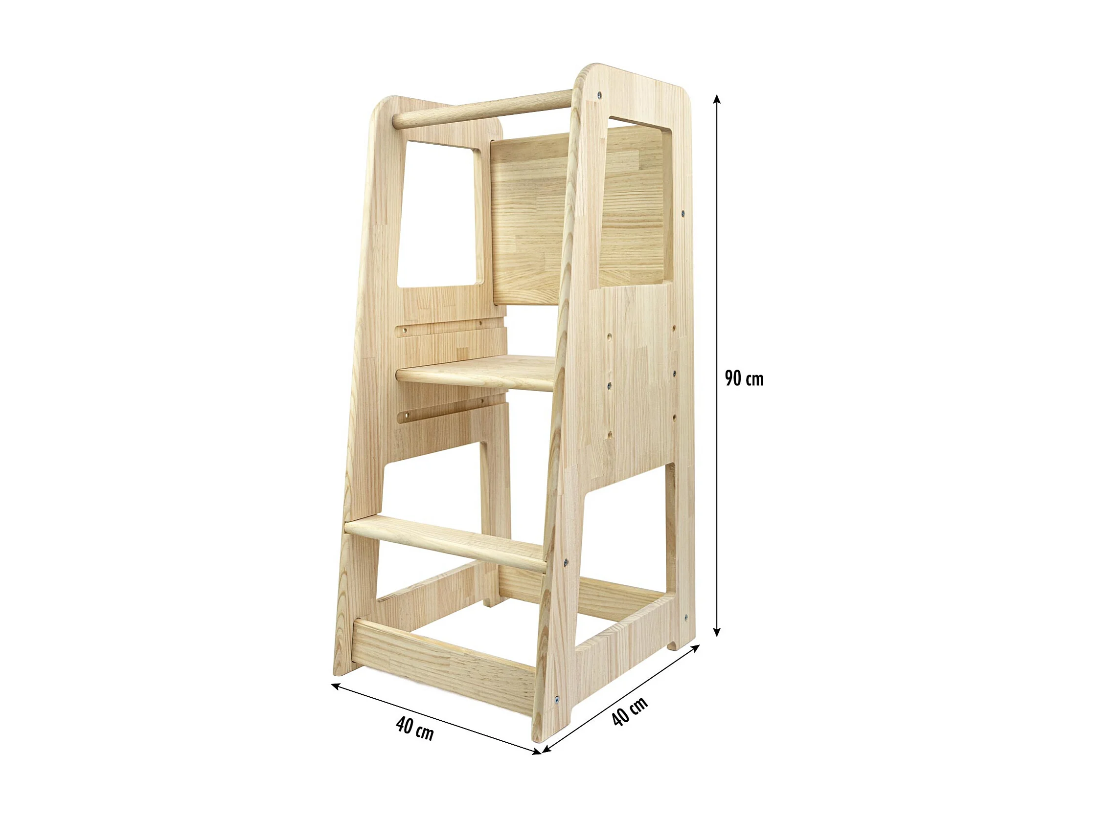 Torre de aprendizagem em madeira maciça de pinho natural não tratado.